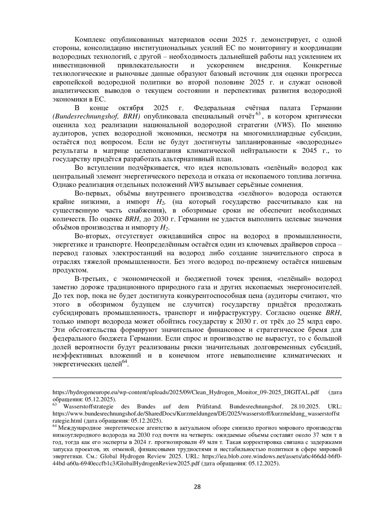 В осенний период 2025 г. Европейский союз продолжил укреплять институциональные механизмы и научно-инновационные основы развития водородной экономики в рамках стратегии климатической нейтральности и энергетического перехода. Центральным документом этого этапа стал подготовленный Совместным исследовательским центром Европейской комиссии в кооперации с участниками инициативы «Партнёрство по чистому водороду» доклад («Programme Review Report 2025»).