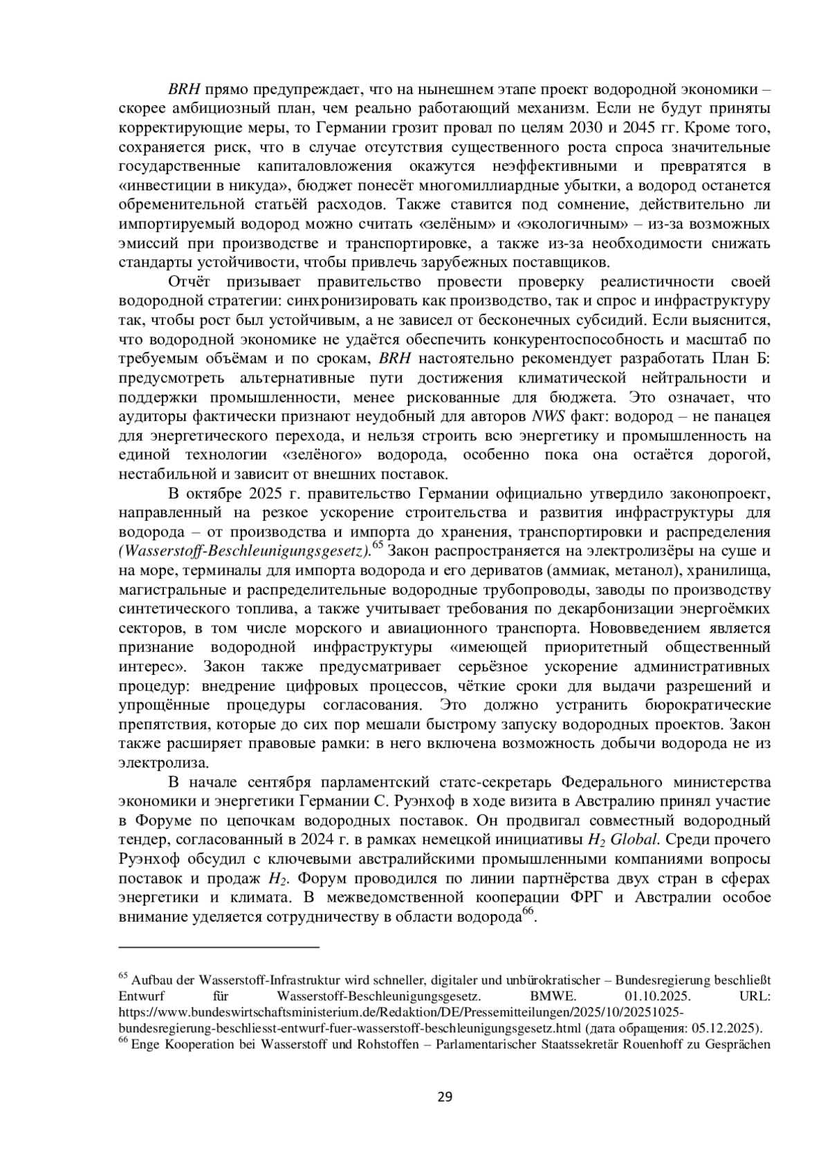 Среди ключевых достижений отмечено развитие электролизёрных технологий, повышение их производительности и эффективности; верификация их применения на реальных демонстрационных проектах; расширение региональных водородных экосистем в Европе за счёт деятельности водородных долин; повышение безопасности, качества стандартизации, обучения и взаимодействия с общественностью благодаря межсекторным инициативам; направленность текущих НИОКР на создание водородных технологий следующего поколения. Документ также содержит анализ существующих технологических, экономических и социальных барьеров по всей цепочке создания водорода.