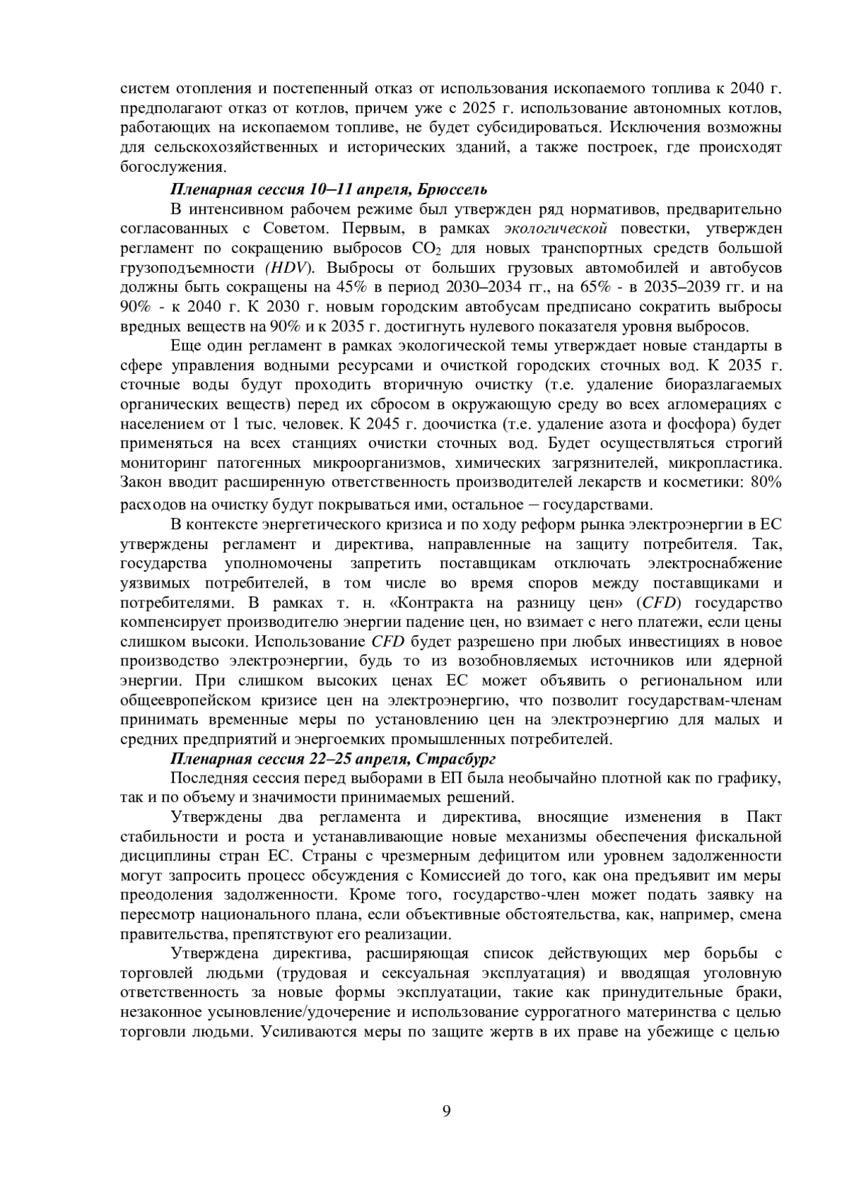 В преддверие июньских выборов Европарламент работал необычайно интенсивно, принимая в рамках очень плотного рабочего графика новые или обновленные законодательные акты в различных сферах деятельности ЕС