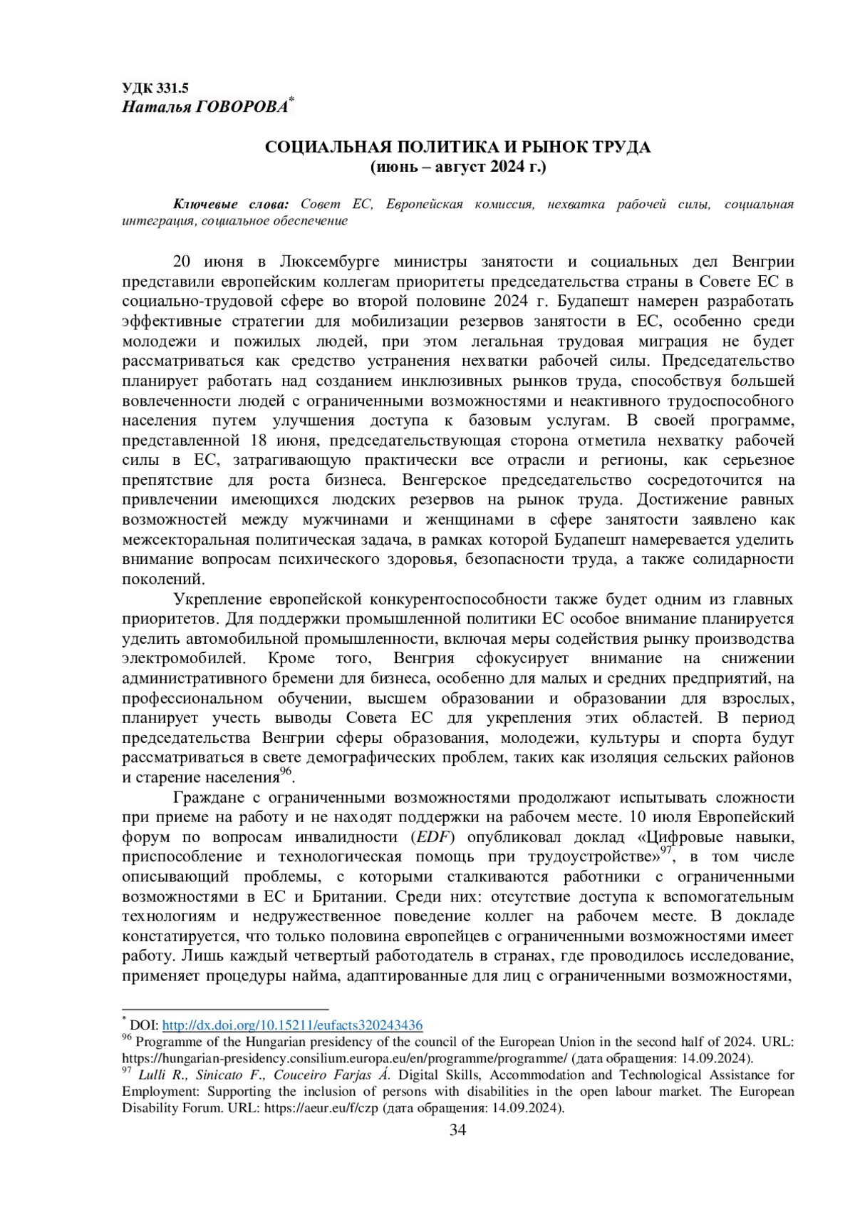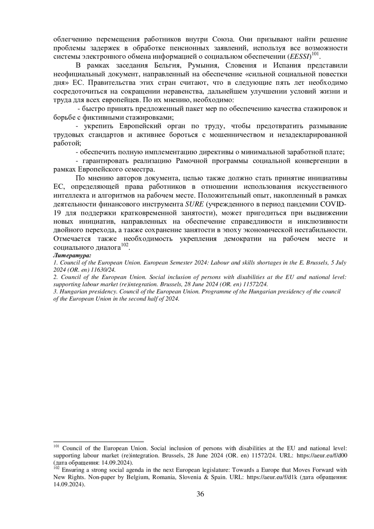 2. Council of the European Union. Social inclusion of persons with disabilities at the EU and national level: supporting labour market (re)integration. Brussels, 28 June 2024 (OR. en) 11572/24.