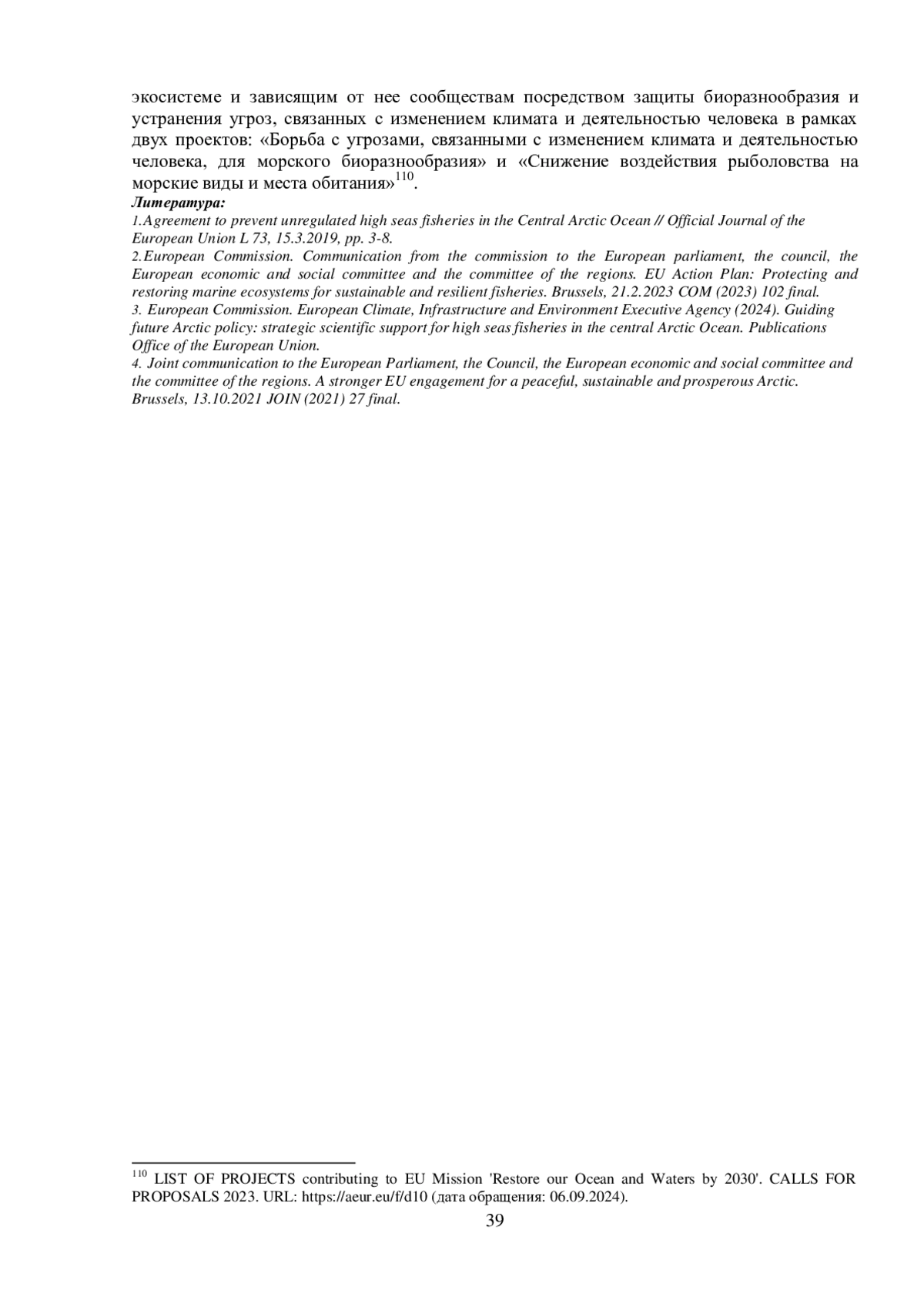 1. Agreement to prevent unregulated high seas fisheries in the Central Arctic Ocean // Official Journal of the European Union L 73, 15.3.2019, pp. 3-8.