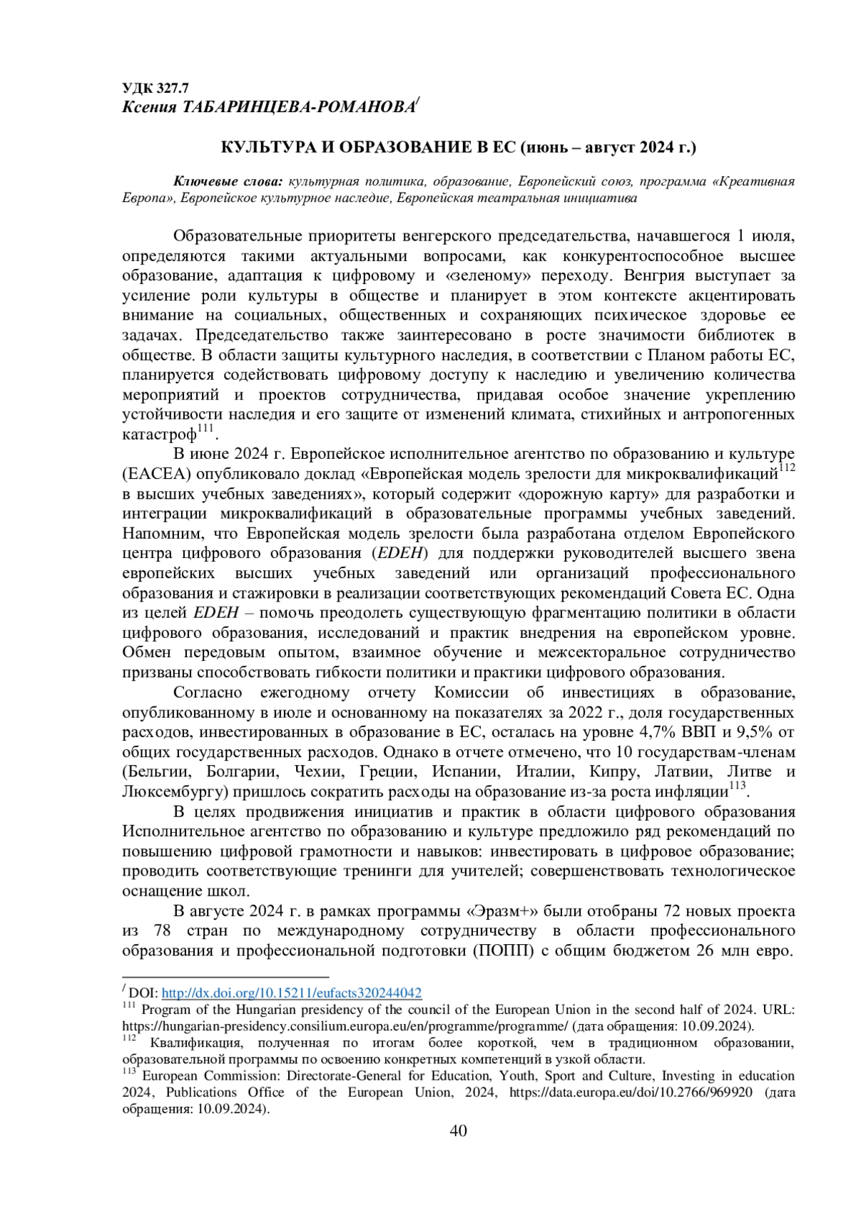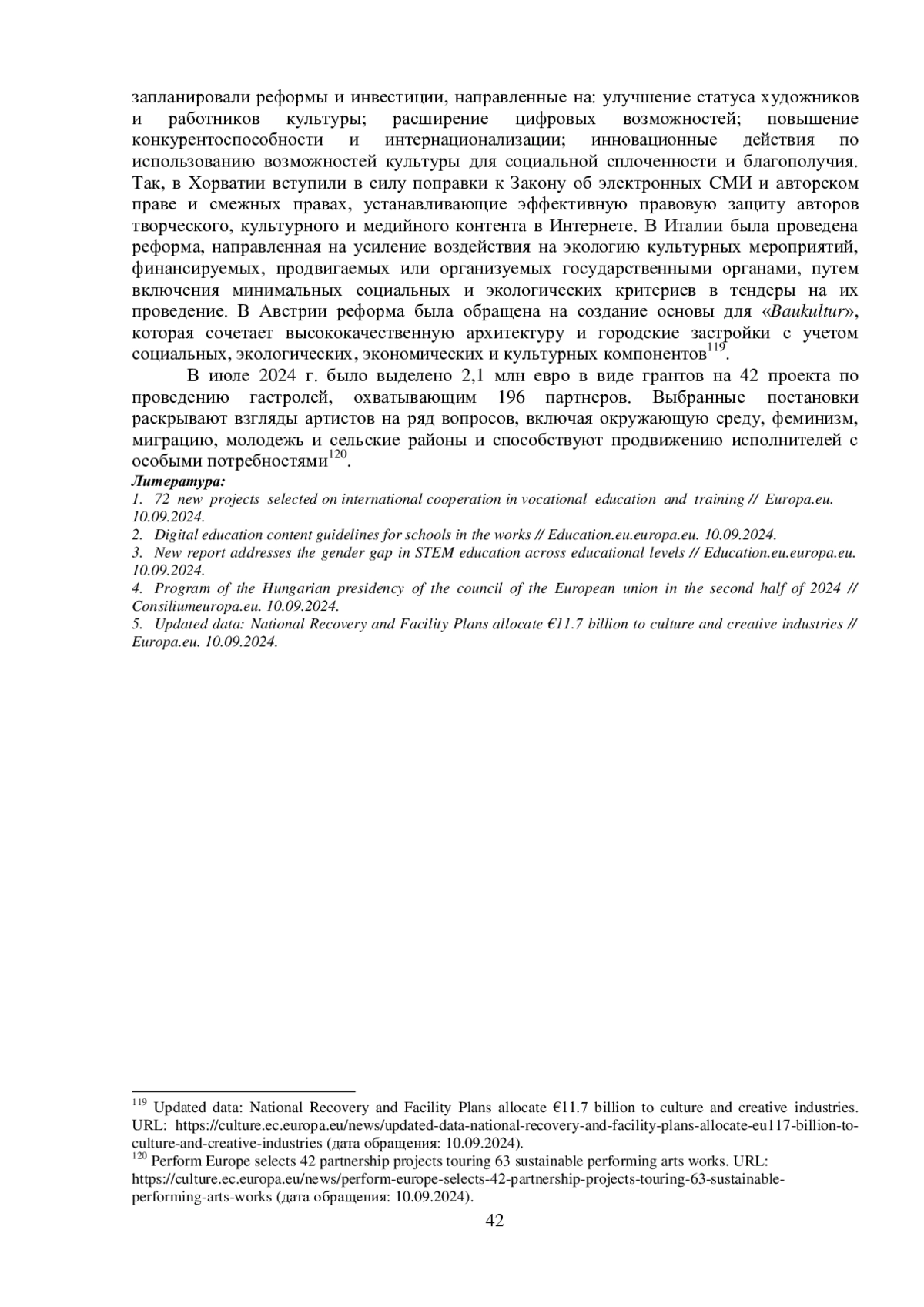 5. Updated data: National Recovery and Facility Plans allocate €11.7 billion to culture and creative industries // Europa.eu. 10.09.2024.