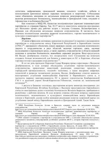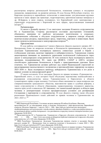 1. Страны Центральной Азии и Европейский союз обсуждают перспективы взаимодействия в сферах политики и безопасности // МИД Республики Казахстан. 6 июня 2024 г.