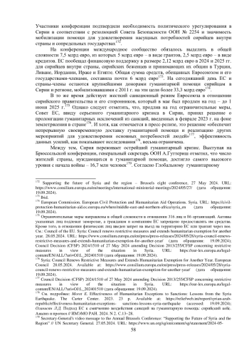 5. Moret E. Effectiveness of Humanitarian Exceptions to Sanctions: Lessons from the Syria Earthquake. The Carter Center. 2023. - 23 p.