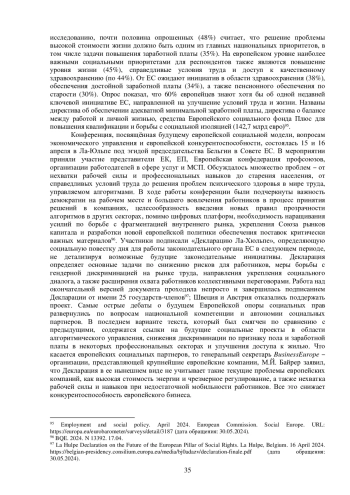 Европейские профсоюзы приветствовали директиву, которая положит конец правовой неопределенности работников платформ, предоставит им новые права, например, доступ к оплачиваемому отпуску или больничному листу и уточнит границы использования цифровых технологий на рынках труда. Что касается представителей ЦП, то они утверждают, что необходимо в большей мере обеспечить работникам платформ возможность сохранить независимость при разработке национальных законов89. 19 марта Комитет по занятости и социальным вопросам Европейского парламента (ЕП) и 24 апреля депутаты ЕП подавляющим большинством голосов одобрили достигнутое с Советом ЕС согласие по проекту директивы.