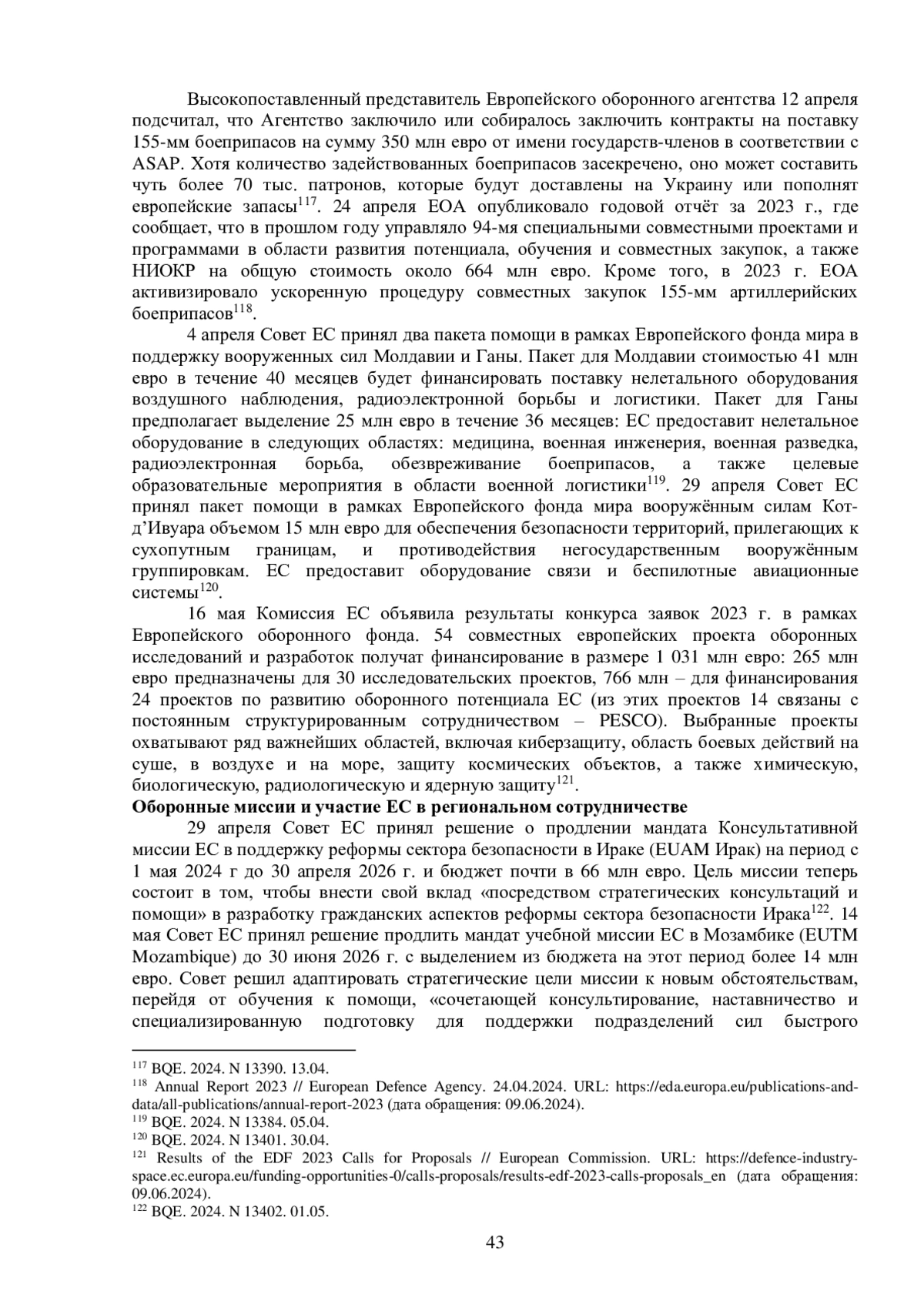 Весна 2024 г. ознаменовалась присоединением Швеции к НАТО и новыми предложениями институтов ЕС в сфере стратегического планирования. Так, среди важнейших событий – предложение Комиссии ЕС по Европейской обороннопромышленной стратегии и Европейской программе оборонной промышленности