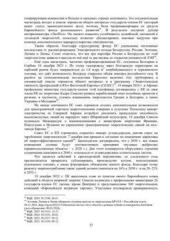 10. Эстония, Латвия и Литва объявили о полном выходе из энергокольца БРЭЛЛ // Российская газета. 28.11.2023.
