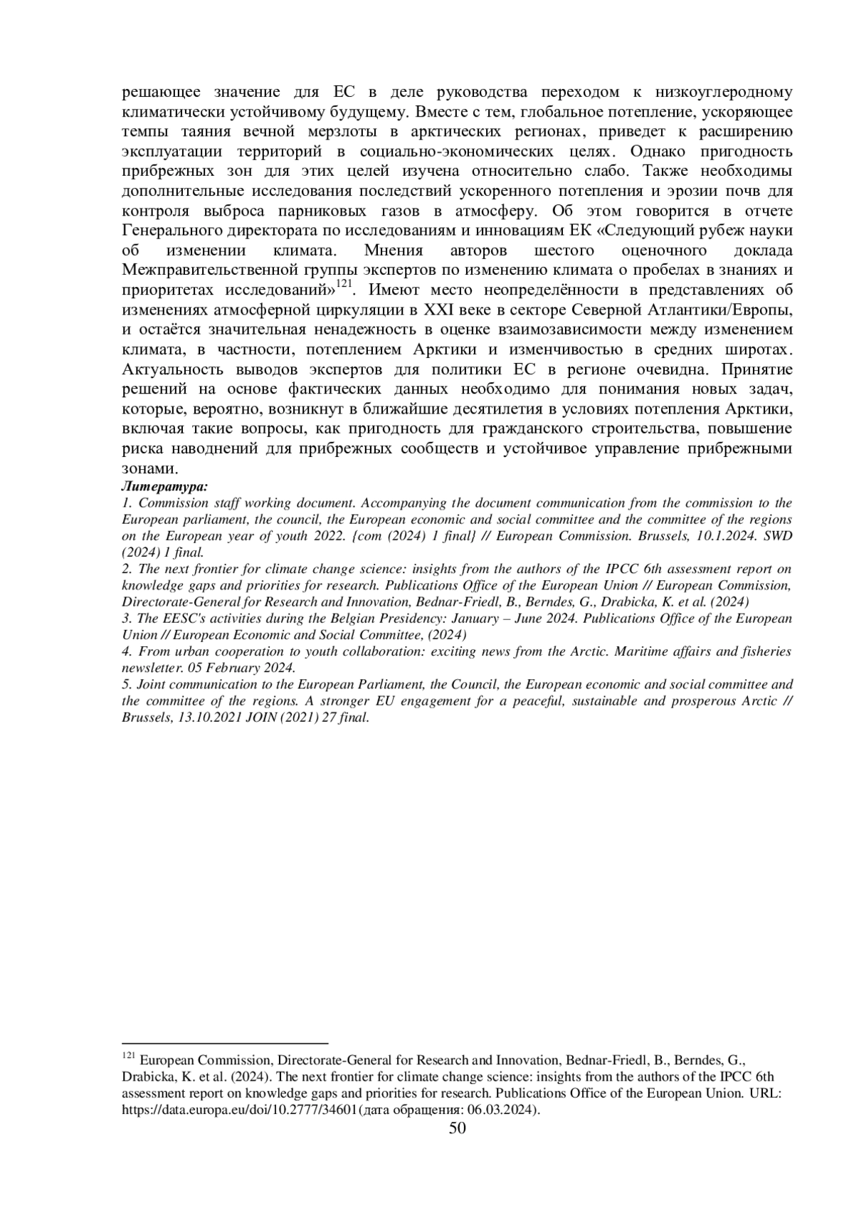 2. The next frontier for climate change science: insights from the authors of the IPCC 6th assessment report on knowledge gaps and priorities for research. Publications Office of the European Union // European Commission, Directorate-General for Research and Innovation, Bednar-Friedl, B., Berndes, G., Drabicka, K. et al. (2024).