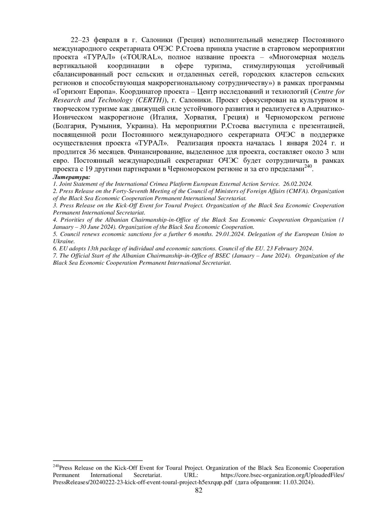 3. Press Release on the Kick-Off Event for Toural Project. Organization of the Black Sea Economic Cooperation Permanent International Secretariat.