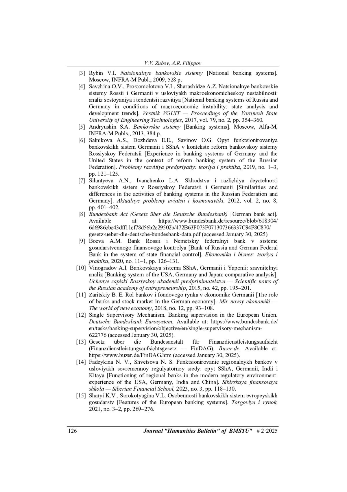 4. Савчина О.В., Простомолотова В.И., Шарашидзе А.З. Национальные банковские системы России и Германии в условиях макроэкономической нестабильности: анализ состояния и тенденции развития. Вестник ВГУИТ, 2017, т. 79, № 2, с. 354-360.