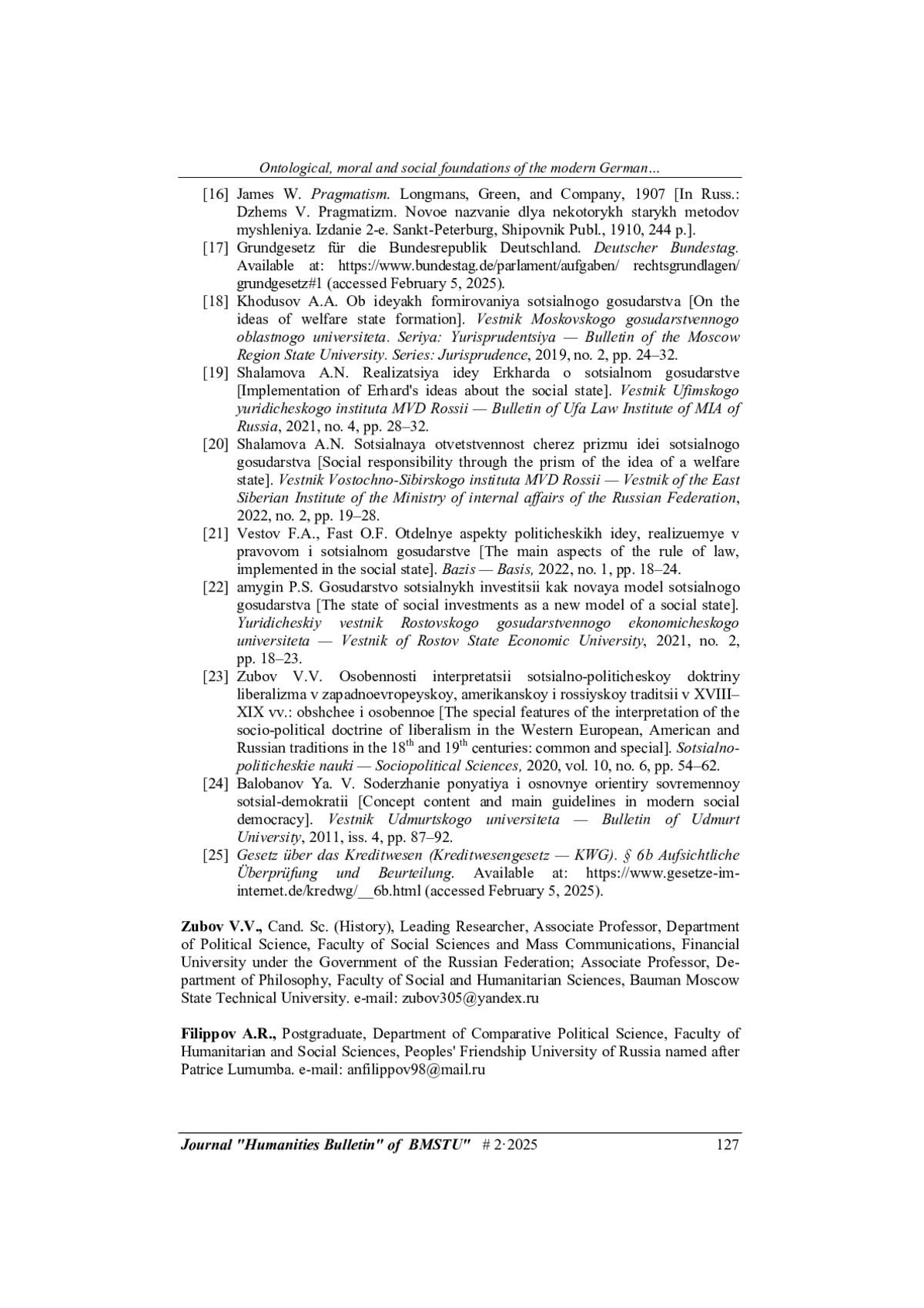 20. Шаламова А.Н. Социальная ответственность через призму идеи социального государства. Вестник Восточно-Сибирского института МВД России, 2022, № 2, с. 19-28.