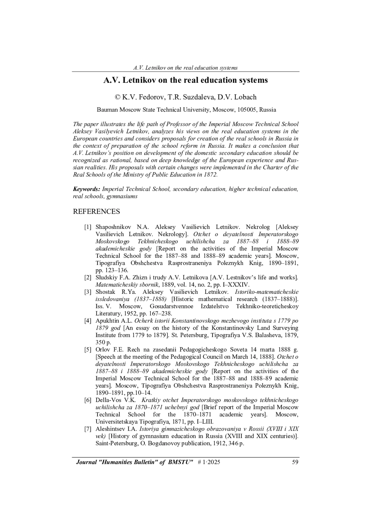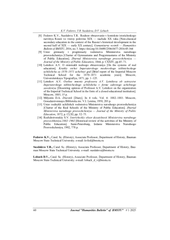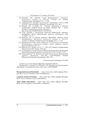 8. Федоров К.В., Суздалева Т.Р. Реальное образование в контексте исторического развития России во второй половине XIX - начале XX века. Гуманитарный вестник, 2016, вып. 5. DOI: 10.18698/2306-8477-2016-05-364