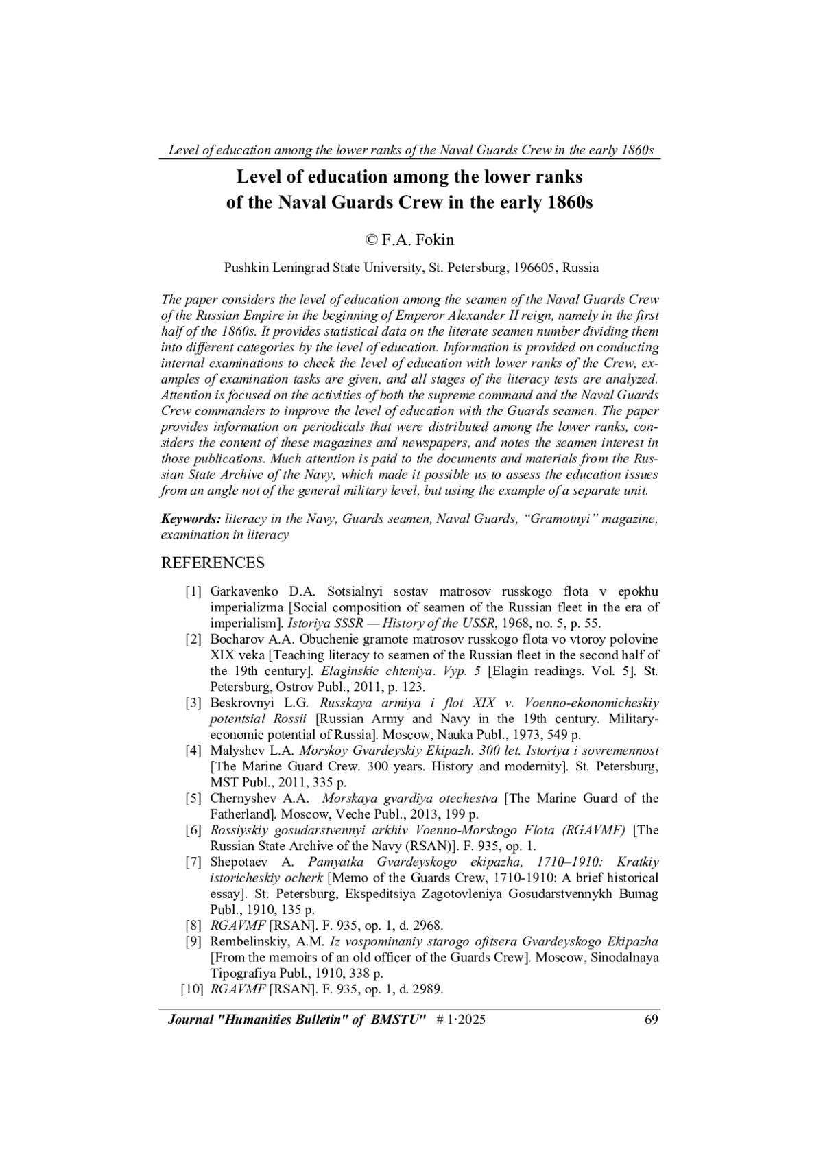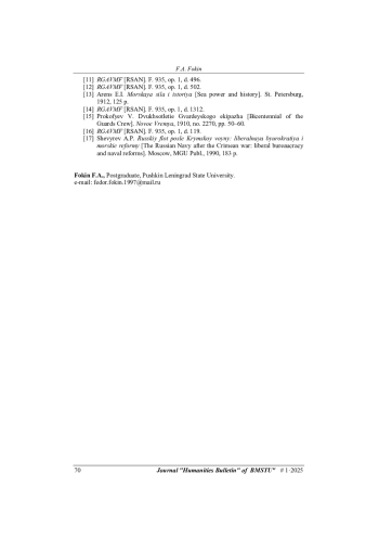 17. Шевырев А.П. Русский флот после Крымской войны: либеральная бюрократия и морские реформы. Москва, Издательство МГУ, 1990, 183 с.Статья поступила в редакцию 28.02.2025.