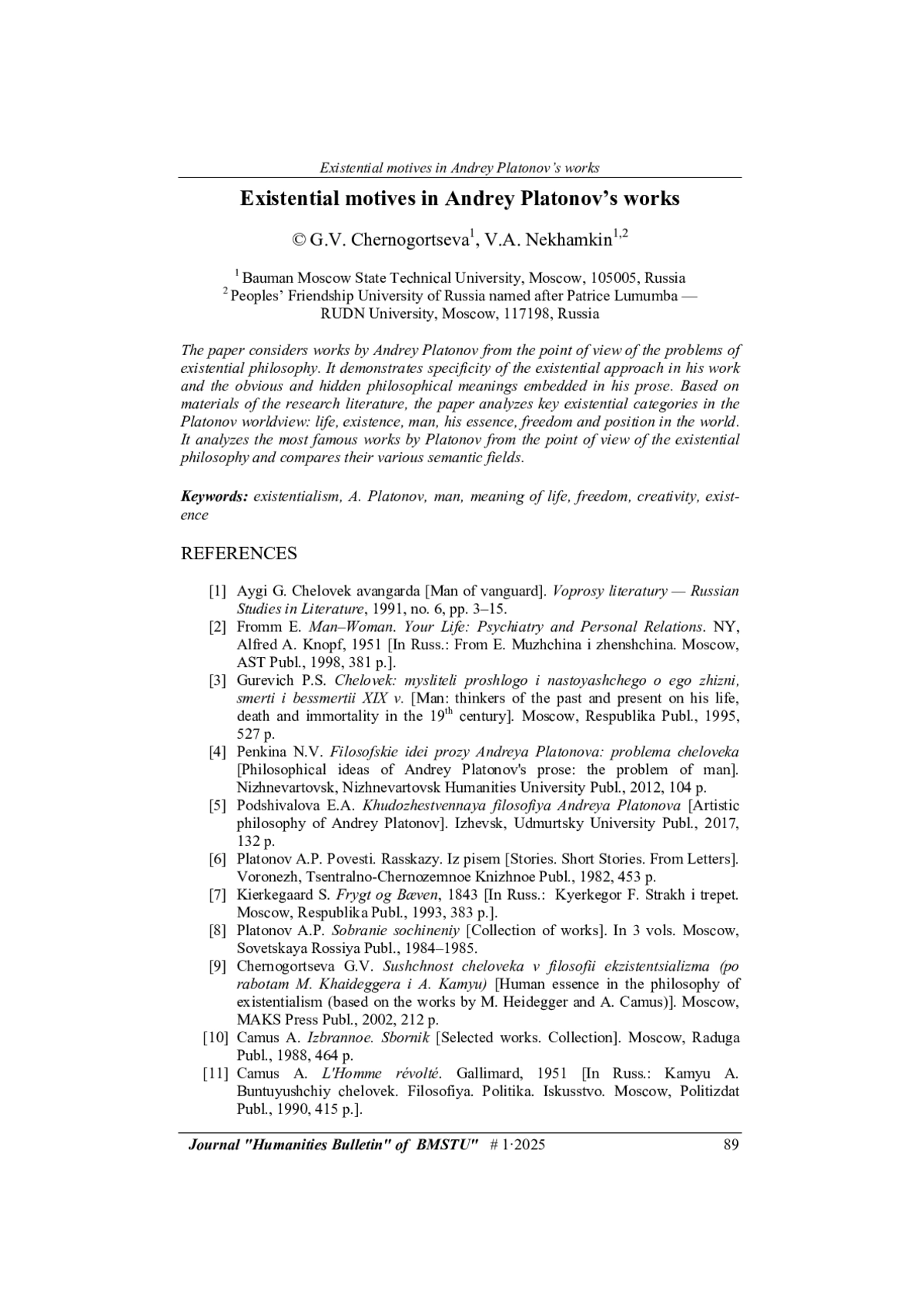 13. Червякова Л.В. Экзистенциальная проблематика прозы А. Платонова и В. Шаламова. В сб.: Филологические этюды. Вып. 10. Ч. I. Саратов, Научная книга, 2007, с. 50-55.