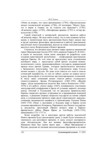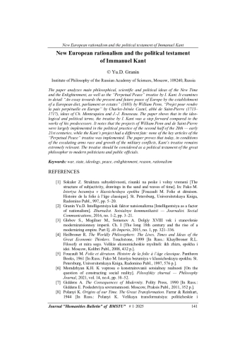 17. Краузе И. Кант и его время: трактат “К Вечному Миру” на фоне французской революции и последующих войн. Кантовский сборник, 2013, № 1, с. 33-45.
