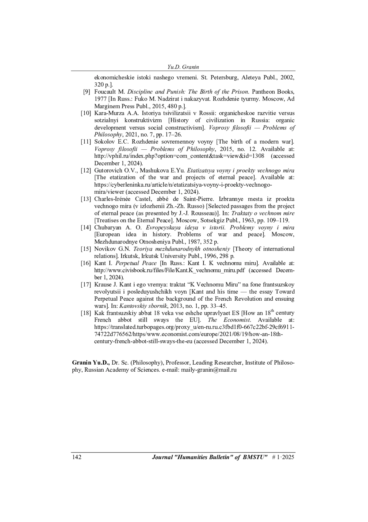 12. Гуторович О.В., Машукова Е.Ю. Этатизация войны и проекты вечного мира. URL: https://cyberleninka.ru/article/n/etatizatsiya-voyny-i-proekty-vechnogo-mira/viewer (дата обращения 01.12.2024).