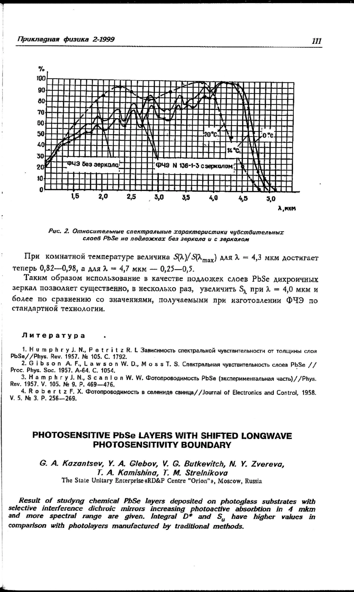 1. H u m p h r y J. N., P e t r i t z R. L Зависимость спектральной чувствительности от толщины слоя PbSe//Phys. Rev. 1957. N 105. С. 1792.