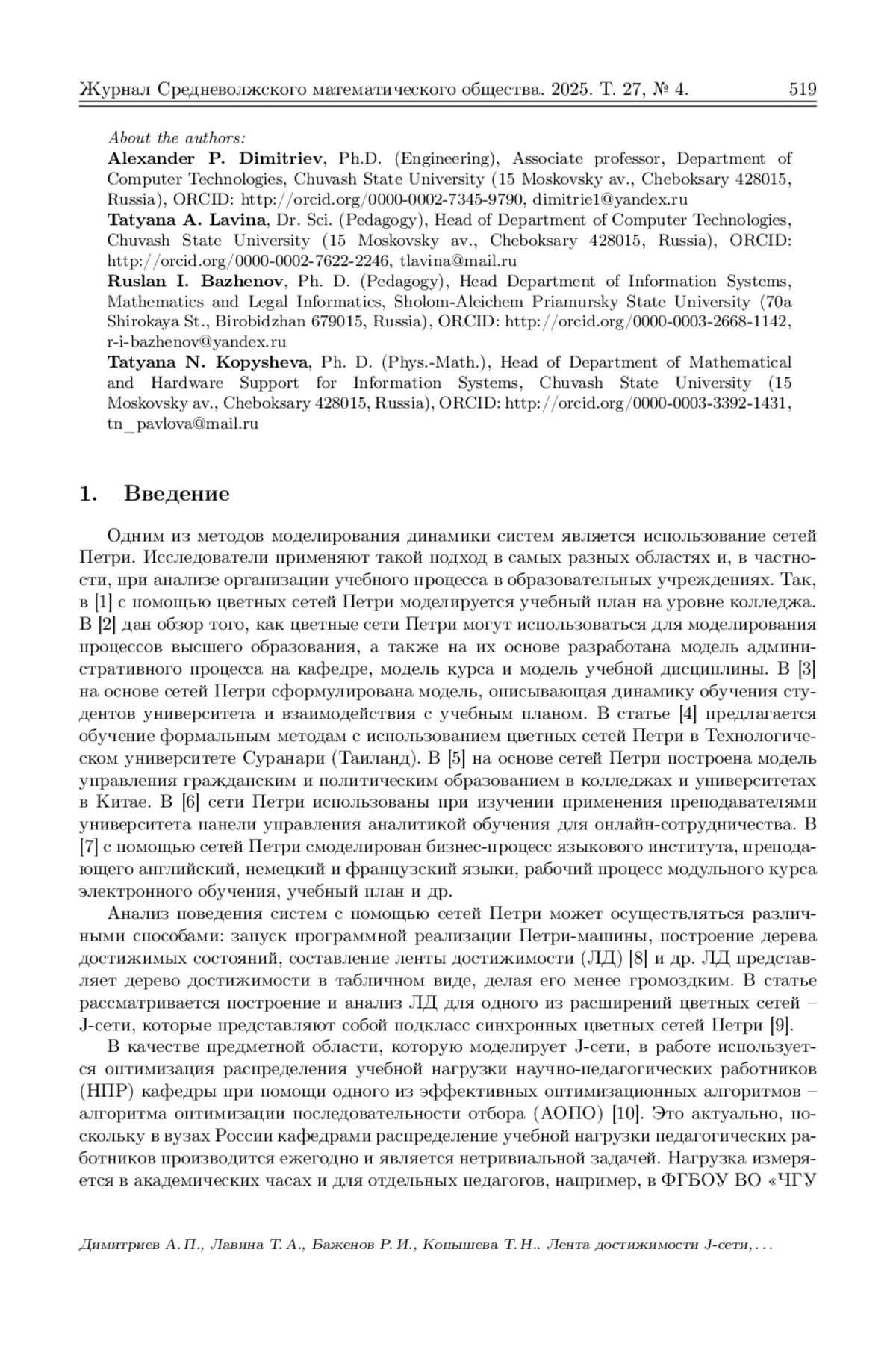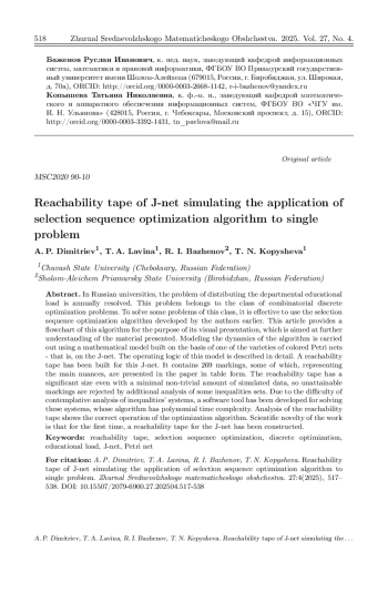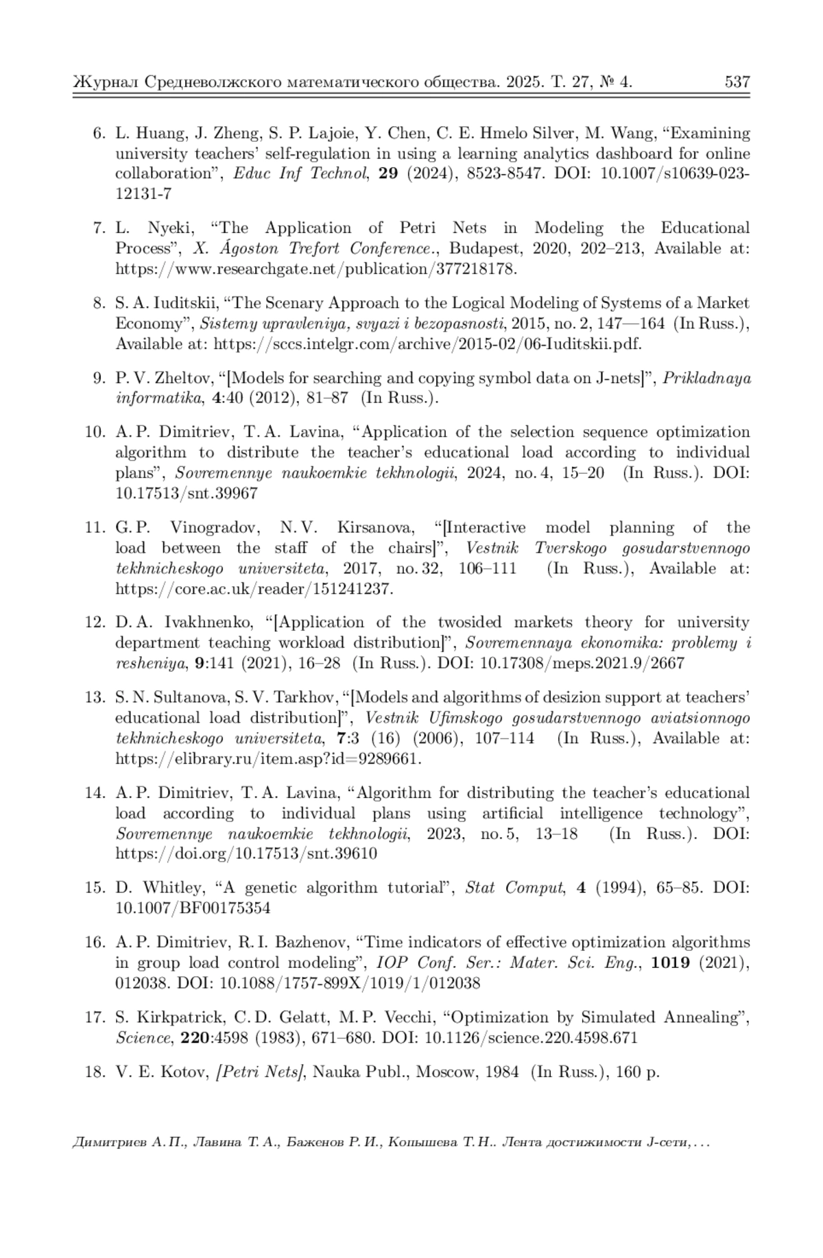 10. Димитриев А. П., Лавина Т. А. Применение алгоритма оптимизации последовательности отбора для распределения учебной нагрузки преподавателя по индивидуальным планам // Современные наукоемкие технологии. 2024. № 4. С. 15-20. DOI: 10.17513/snt.39967 EDN: QHJHED