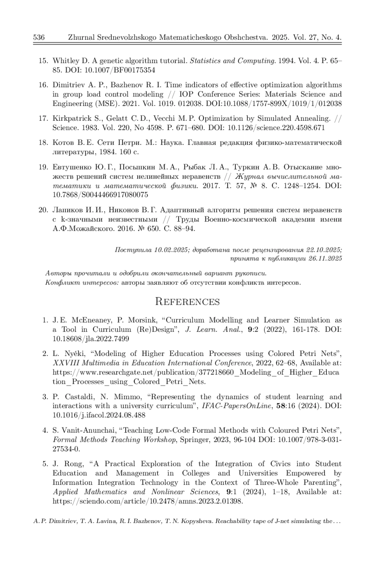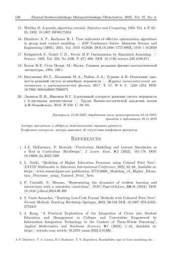 7. Nyeki L. The Application of Petri Nets in Modeling the Educational Process // X. Agoston Trefort Conference. Budapest. 2020. P. 202-213. Режим доступа: https://www.researchgate.net/publication/377218178.