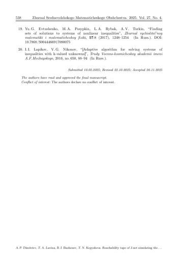 19. Евтушенко Ю. Г., Посыпкин М. А., Рыбак Л. А., Туркин А. В. Отыскание множеств решений систем нелинейных неравенств // Журнал вычислительной математики и математической физики. 2017. Т. 57, № 8. С. 1248-1254. DOI: 10.7868/S0044466917080075 EDN: ZBKBOX