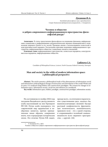 1. Адамьянц Т.З. Человек в информационной среде / Институт социологии ФНИСЦ РАН. // URL: https://www.isras.ru/index.php?page_id=895&ysclid=m6e4un75x496839127.