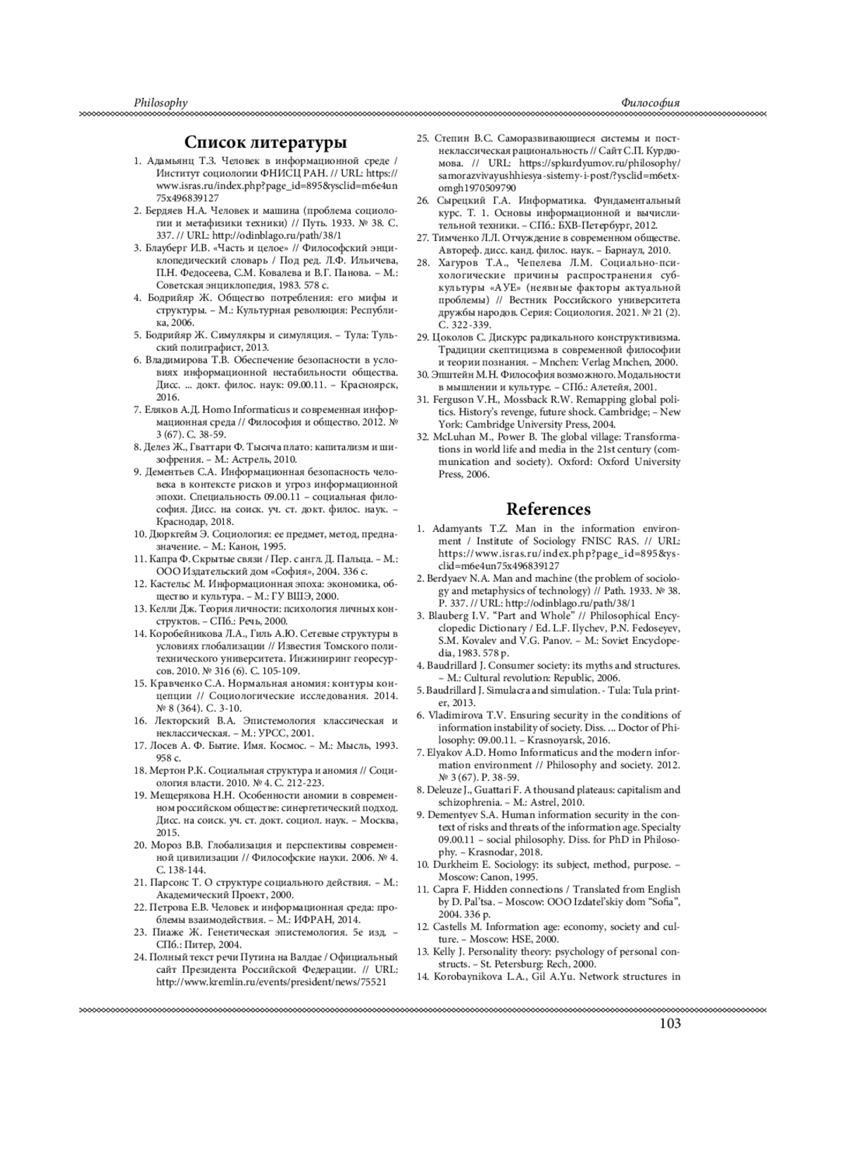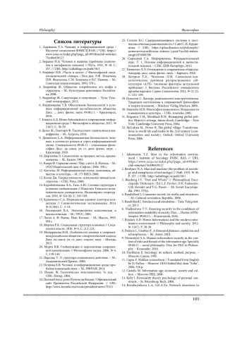 7. Еляков А.Д. Homo Informaticus и современная информационная среда // Философия и общество. 2012. № 3 (67). С. 38-59. EDN: PPAUGN