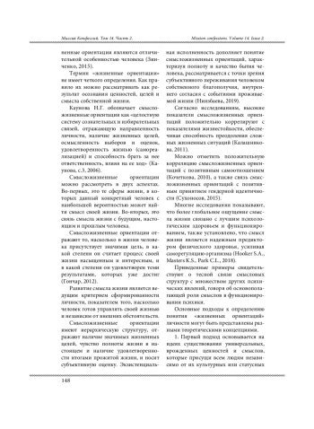 30. Hooker S.A., Masters K.S., Park C.L. A meaningful life is a healthy life: A conceptual model linking meaning and meaning salience to health // Review of General Psychology. 2018. Vol. 22. № 1. P. 11-24.