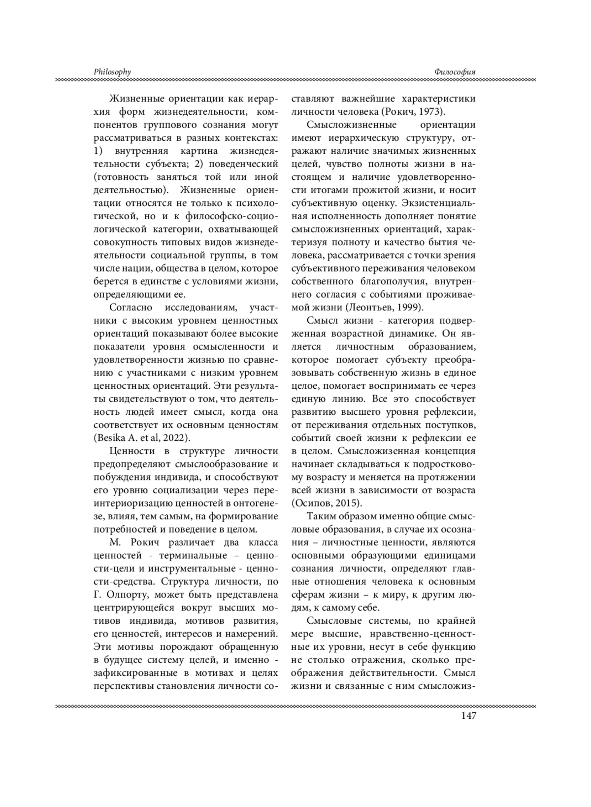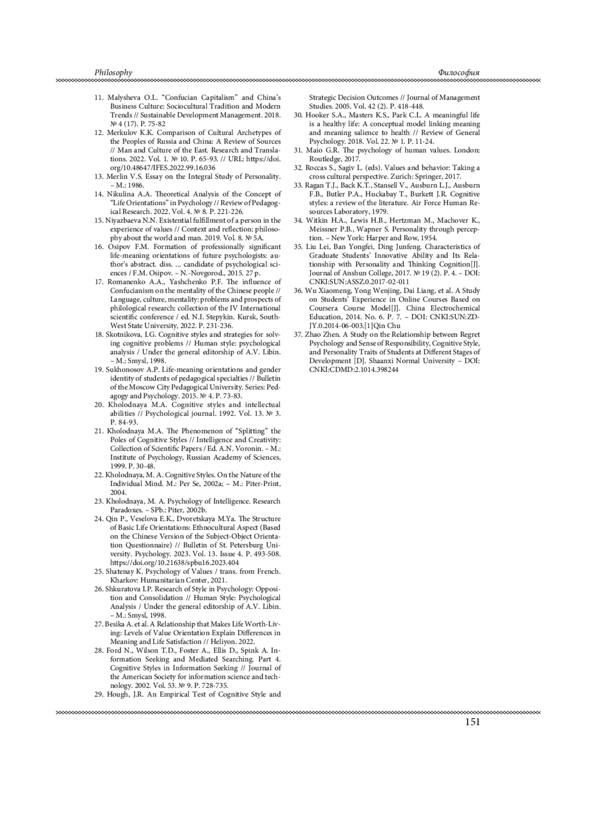 27. Besika A. et al. A Relationship that Makes Life Worth-Living: Levels of Value Orientation Explain Differences in Meaning and Life Satisfaction // Heliyon. 2022. EDN: XILMHC