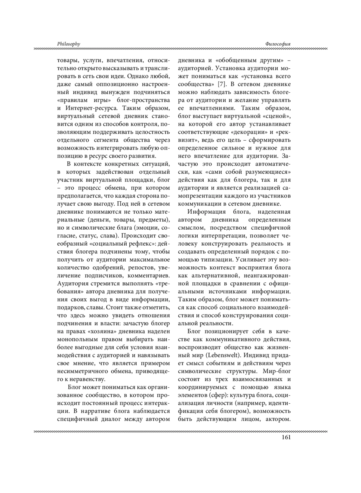 Значительно увеличивающаяся скорость распространения блогов и разрастание блогосферы как площадки и способа применения, реализации человека информационного общества вызвали необходимость философского и культурологического осмысления данного явления. Особенно это важно в условиях лавинообразного распространения информационных технологий, замещения реальности виртуальной и, как следствие, влияния этих процессов на культуру современного общества.