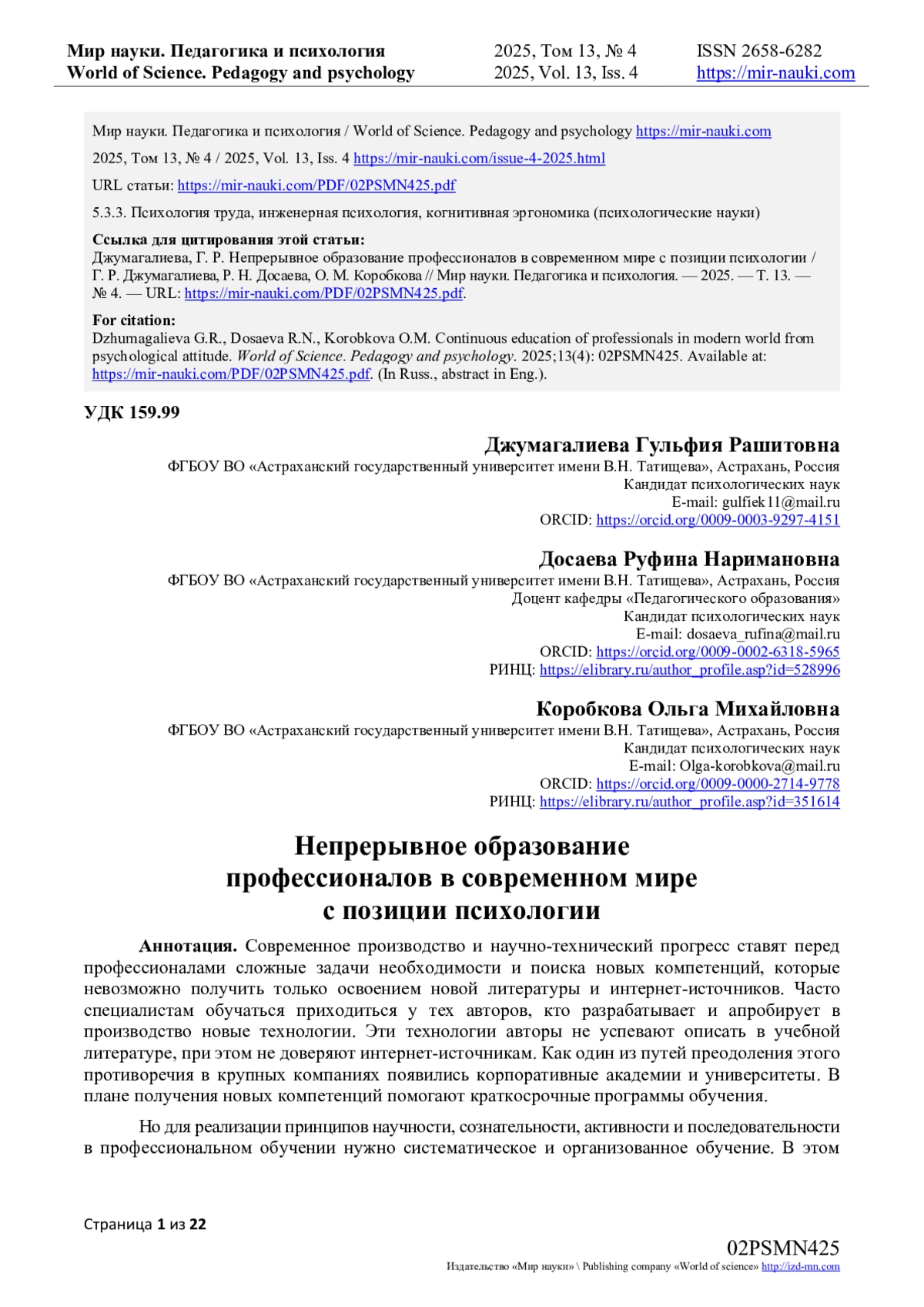 - ИЗДАТЕЛЬСТВО МИР НАУКИ