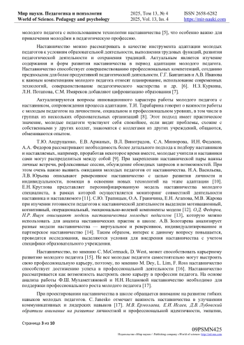 8. Тарабарина Т.И. Сопровождение профессиональной деятельности молодых педагогов как объект научных исследований // Современные проблемы науки и образования. 2021. № 4. URL: https://science-education.ru/ru/article/view?id=30986 (дата обращения: 01.02.2025). EDN: DLNUBX