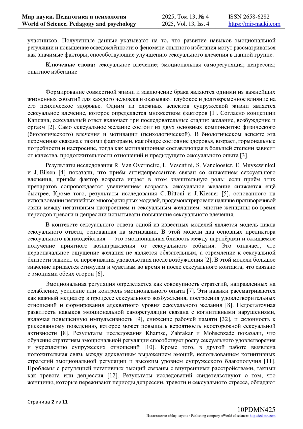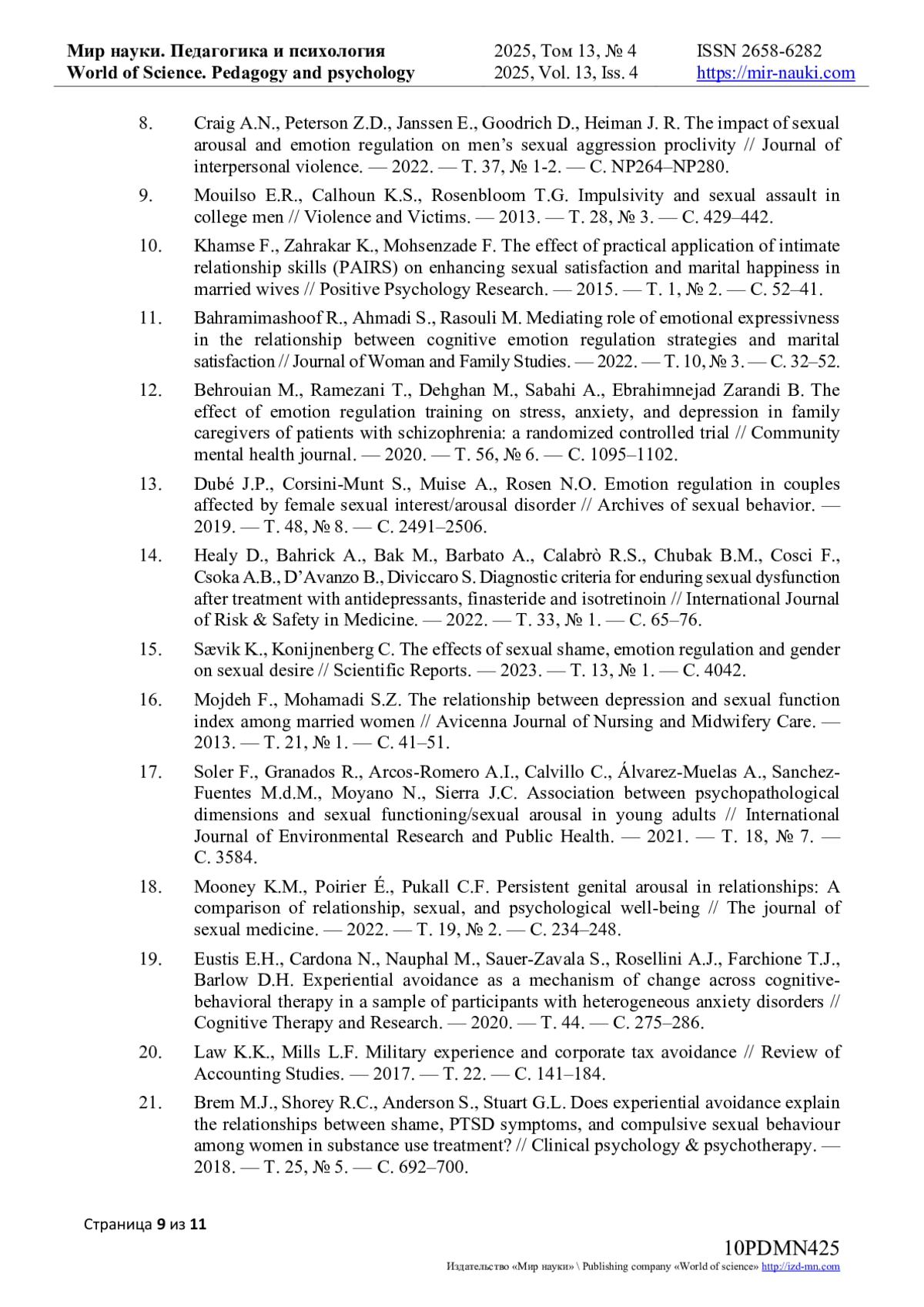 15. Sævik K., Konijnenberg C. The effects of sexual shame, emotion regulation and gender on sexual desire // Scientific Reports. - 2023. - T. 13, № 1. - C. 4042. EDN: ORJBZF