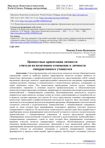 Ценностные ориентации личности учителя на позитивное отношение к личности гиперактивного учащегося — это психолого-педагогическое условие, способствующее формированию психологической готовности учителя к педагогическому взаимодействию с гиперактивными учащимися в рамках исследования.