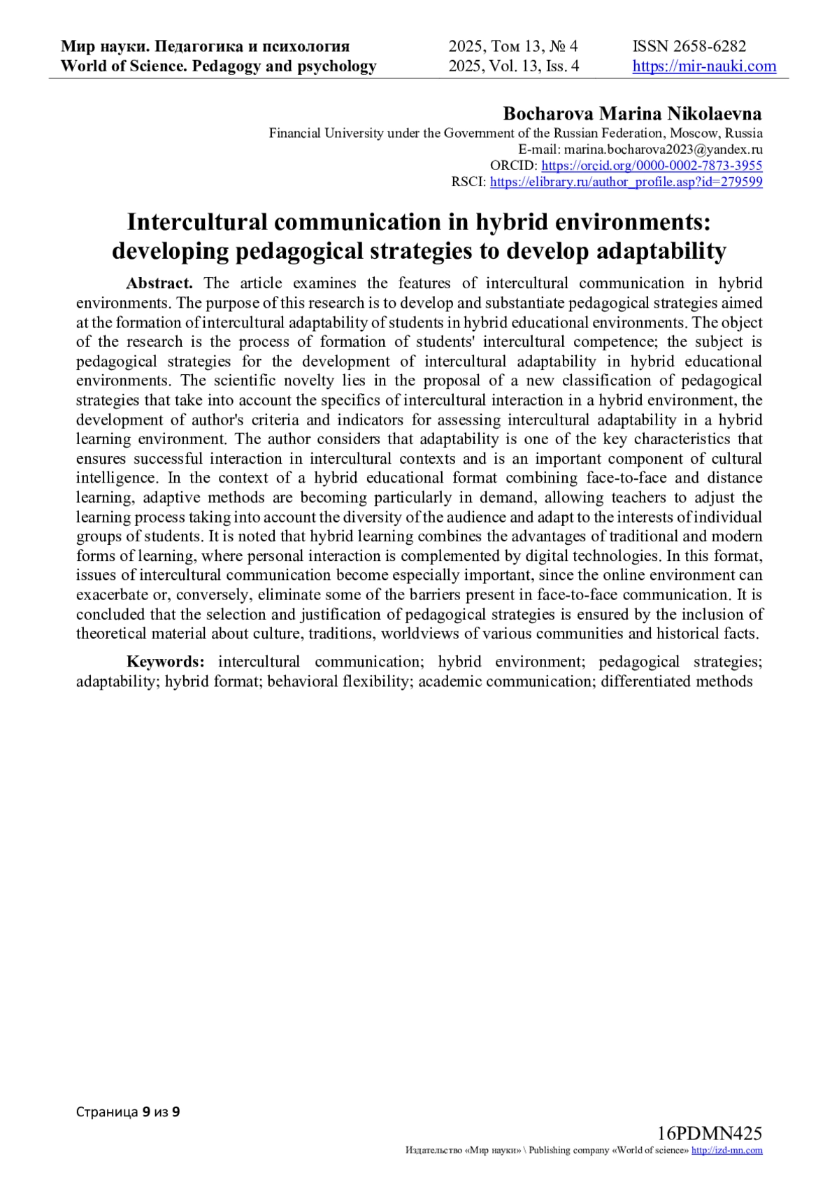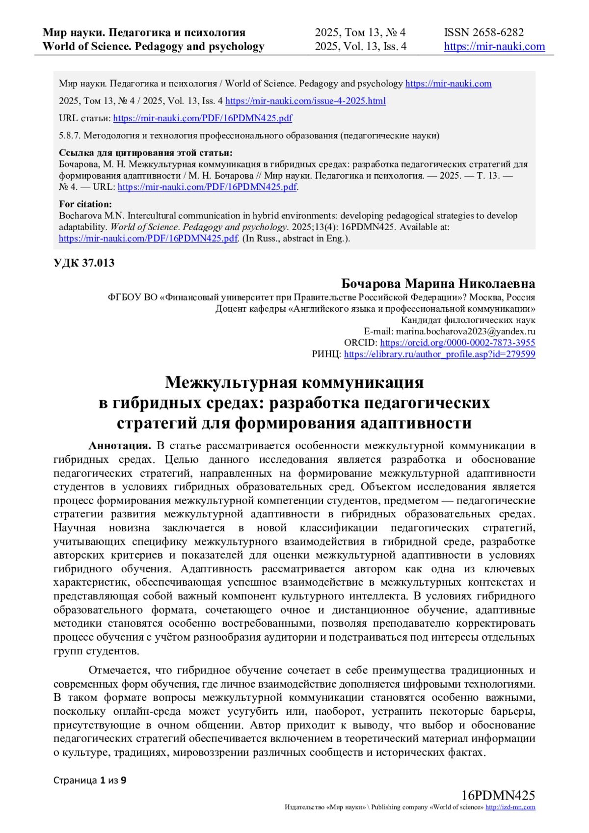 - ИЗДАТЕЛЬСТВО МИР НАУКИ