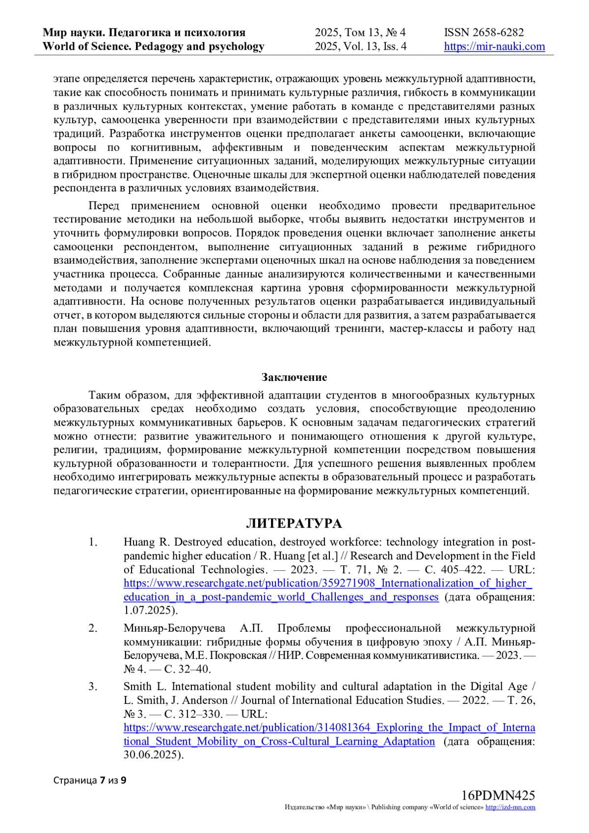 3. Smith L.International student mobility and cultural adaptation in the Digital Age / L. Smith, J. Anderson // Journal of International Education Studies. - 2022. - Т. 26, № 3. - С. 312-330. - URL: https://www.researchgate.net/publication/314081364_Exploring_the_Impact_of_International_Student_Mobility_on_Cross-Cultural_Learning_Adaptation (дата обращения: 30.06.2025).