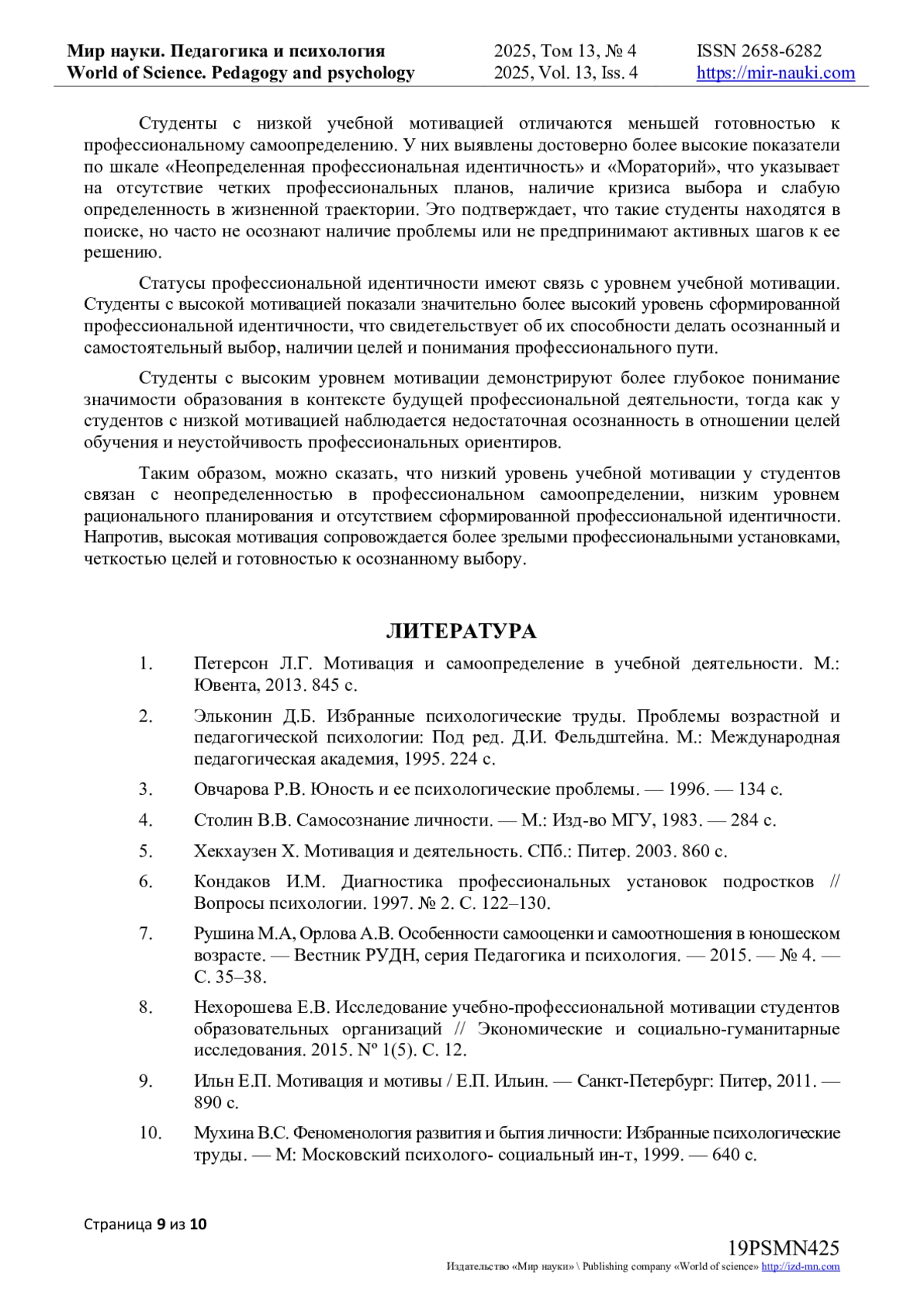 9. Ильн Е.П. Мотивация и мотивы / Е.П. Ильин. - Санкт-Петербург: Питер, 2011. - 890 с.