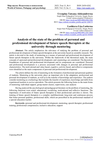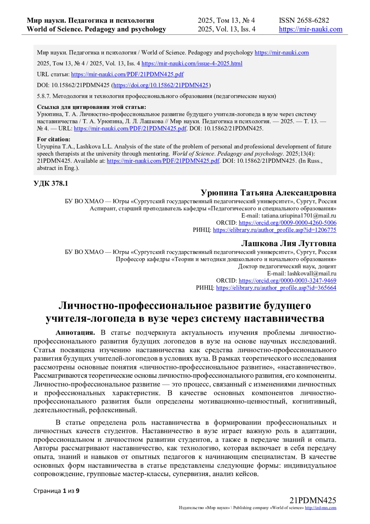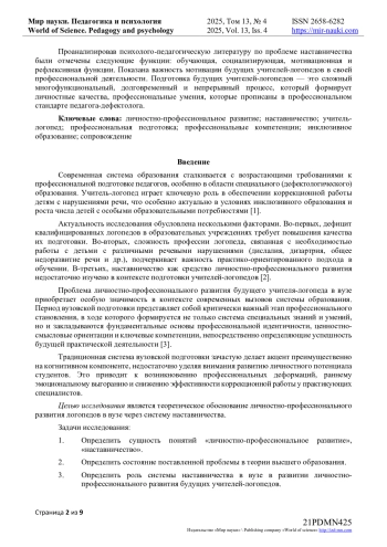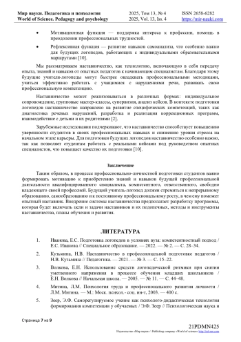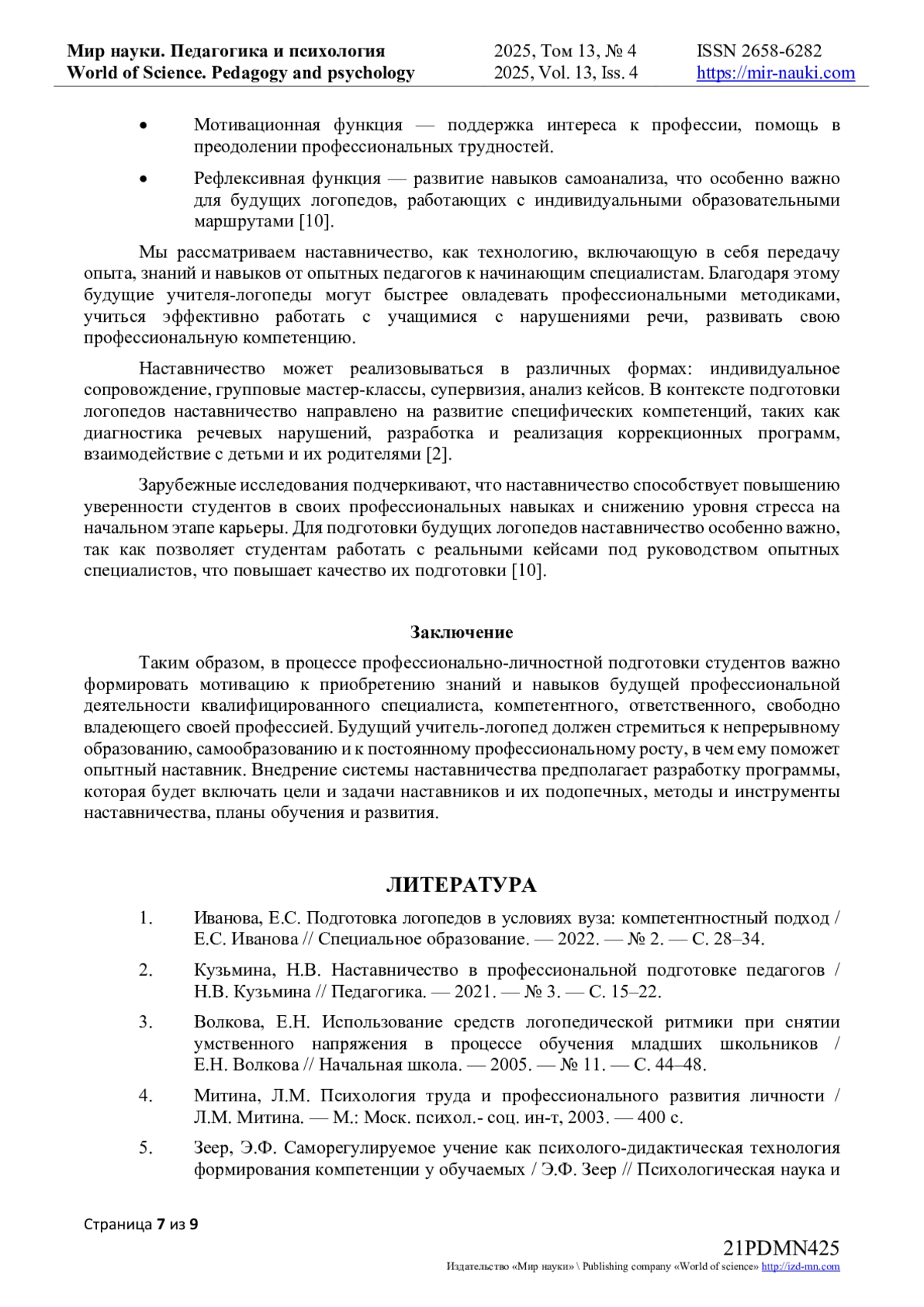 2. Кузьмина, Н.В. Наставничество в профессиональной подготовке педагогов / Н.В. Кузьмина // Педагогика. - 2021. - № 3. - С. 15-22.