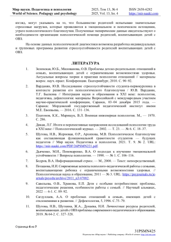 5. Шутова, Н.В., Жерновая, О.Р., Архипова, М.В. Психологическое благополучие как составляющая функциональной грамотности студентов - будущих педагогов // Мир науки. Педагогика и психология. 2021. Т. 9. № 2. URL: https://mir-nauki.com/PDF/26PSMN221.pdf. EDN: QHUPGP