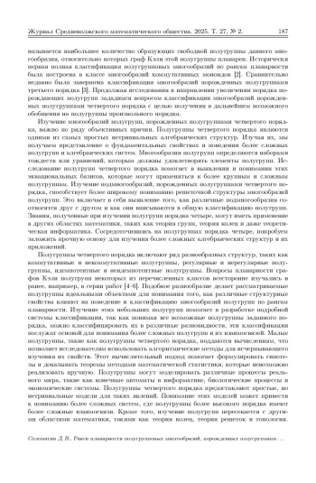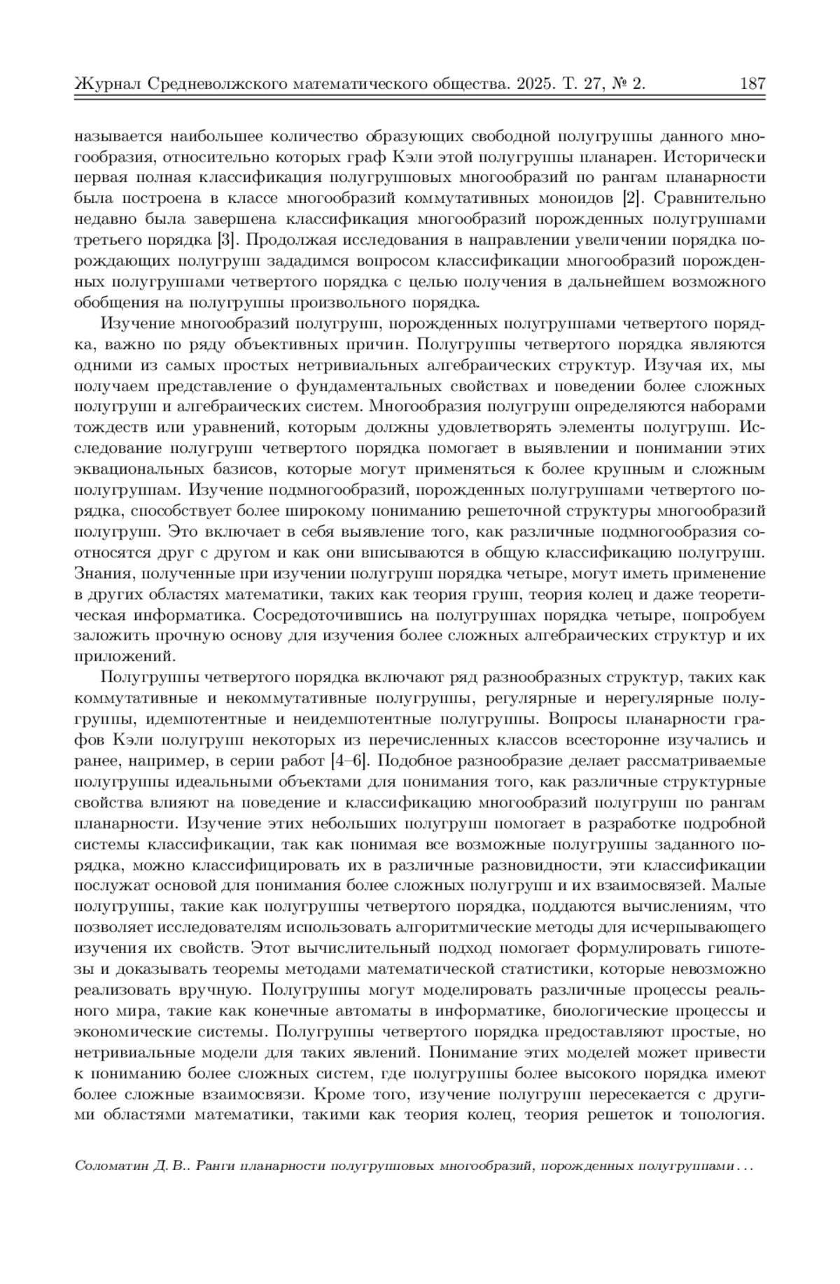 2. Соломатин Д. В. Ранги планарности многообразий коммутативных моноидов // Вестник Омского университета. 2012. Т. 4. С. 41-45.