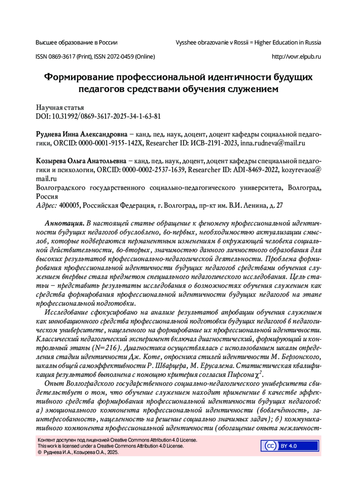 27. Кисляков П.А., Шмелева Е.А., Феофанов В.Н., Демченко Н.А., Шимановская Я.В. Наставничество в обучении служением при подготовке будущих педагогов и психологов // Научный поиск: личность, образование, культура. 2023. № 4. С. 12-16. DOI: 10.54348/SciS.2023.4.2 EDN: HYWRRU