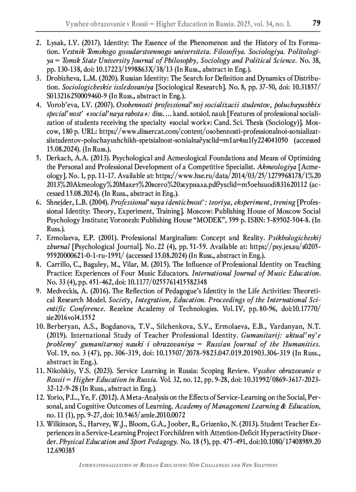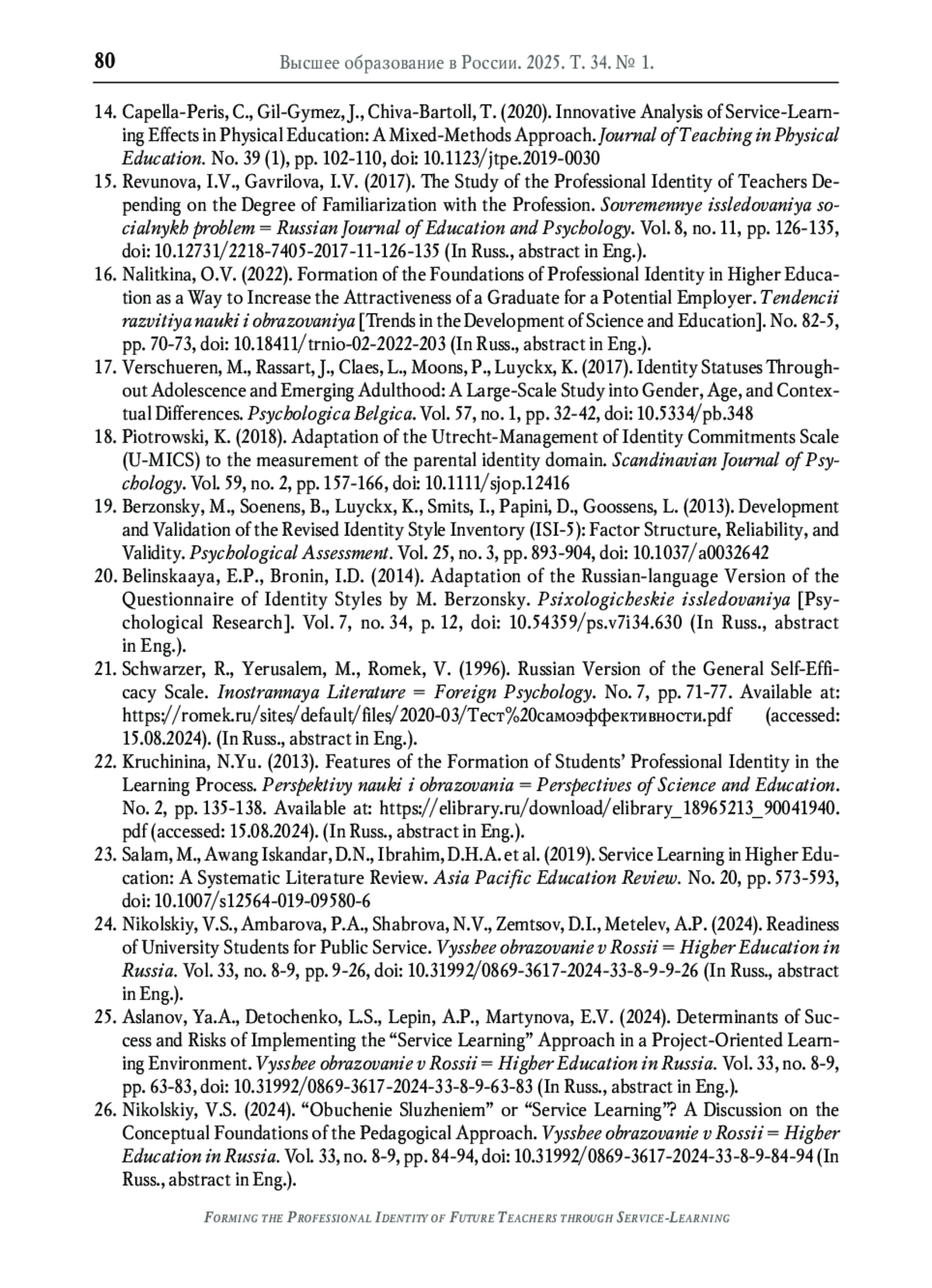 26. Никольский В.С. Обучение служением в России: становление предметного поля // Высшее образование в России. 2023. Т. 32. № 12. С. 9-28. 10.31992/0869-3617-2023-32- 12-9-28. DOI: 10.31992/0869-3617-2023-32-12-9-28 EDN: PWWCVL