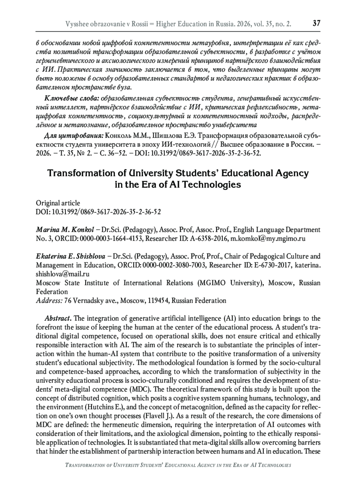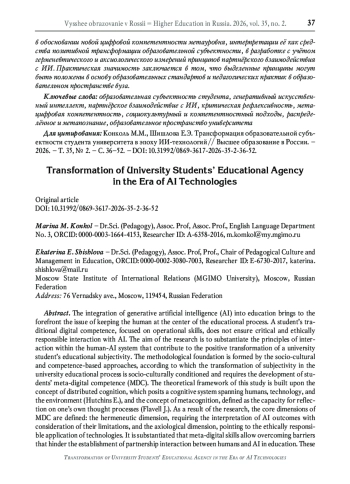 26. Конколь М.М., Марьина Е.Д. Методологические основания системы метацифровой компетентности (на примере языкового образования) // Образование и наука. - 2025. - Т. 27, № 9. - С. 9-29. -. DOI: 10.17853/1994-5639-2025-9-9-29 EDN: JDKCXN