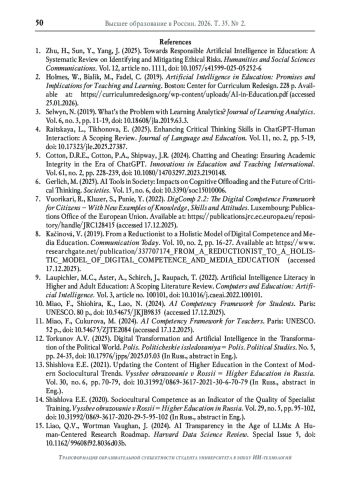 10. Miao F., Shiohira K., Lao N. AI Competency Framework for Students. - Paris: UNESCO, 2024. - 80 p. - (дата обращения: 17.12.2025). DOI: 10.54675/JKJB9835