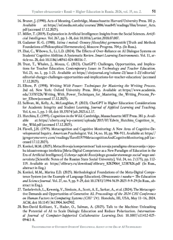 16. Bruner J. Acts of meaning. - Cambridge, Massachusetts: Harvard University Press, 1990. - 181 p. - URL: https://mf.media.mit.edu/courses/2006/mas845/readings/files/bruner_Acts.pdf (дата обращения: 17.12.2025).