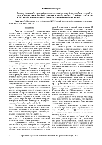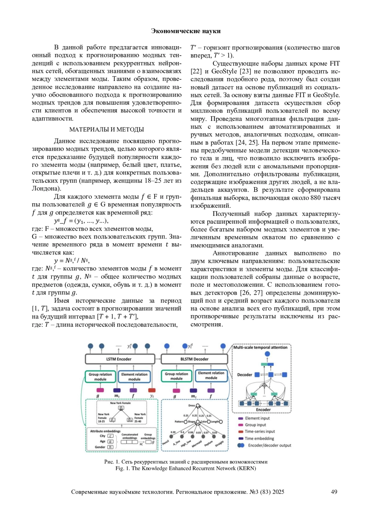 Прогнозирование модных трендов остается сложной задачей из-за ограниченного охвата элементов и упрощенных моделей в существующих подходах. В данной работе представлен крупномасштабный датасет FIT, содержащий временные ряды модных элементов и демографические данные пользователей. Для анализа сложных временных зависимостей предложена модель KERN на основе рекуррентных нейронных сетей, учитывающая внутренние и внешние знания предметной области. Модель продемонстрировала точные прогнозы даже для элементов с нерегулярными паттернами как на полугодовом, так и на годовом горизонте планирования. Особый интерес представляет анализ различий в тенденциях для разных пользовательских групп - модель успешно улавливает эти особенности, что значительно повышает точность персонализированных прогнозов. На основе этих результатов разработана система генерации комплексных отчетов, охватывающих все аспекты модных тенденций от базовых категорий до специфических атрибутов. Эксперименты подтверждают, что KERN обеспечивает более точное прогнозирование трендов по сравнению с традиционными методами.