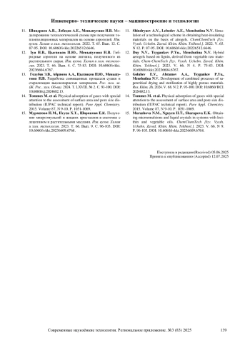 11. Шиндряев А.В., Лебедев А.Е., Меньшутина Н.В. Моделирование технологической схемы при получении теплоизоляционных материалов на основе аэрогелей. Изв. вузов. Химия и хим. технология. 2022. Т. 65. Вып. 12. С. 87-95. DOI: 10.6060/ivkkt.20226512.6646 EDN: ICXCGY