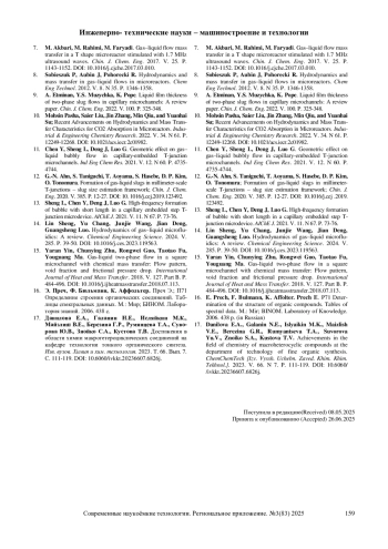 10. Mohsin Pasha, Saier Liu, Jin Zhang, Min Qiu, and Yuanhai Su; Recent Advancements on Hydrodynamics and Mass Transfer Characteristics for CO2 Absorption in Microreactors. Industrial & Engineering Chemistry Research. 2022. V. 34. N 61. P. 12249-12268. DOI: 10.1021/acs.iecr.2c01982