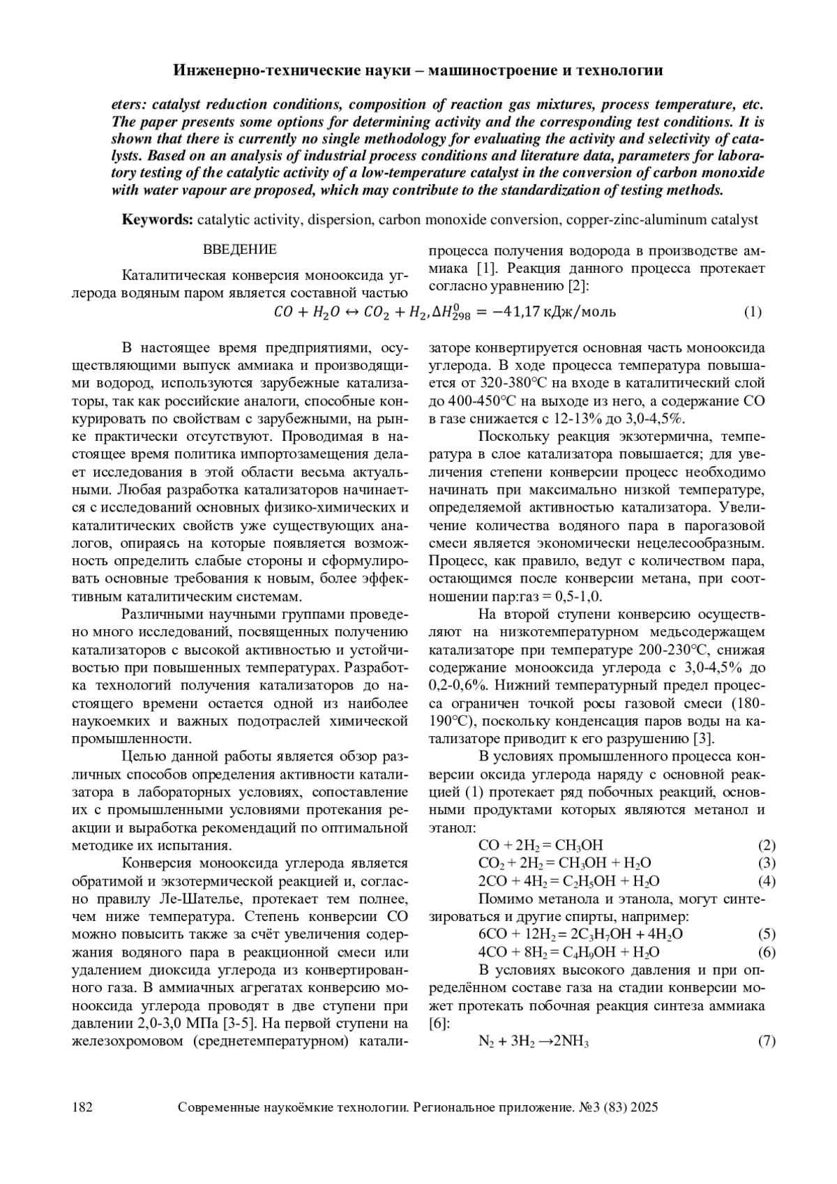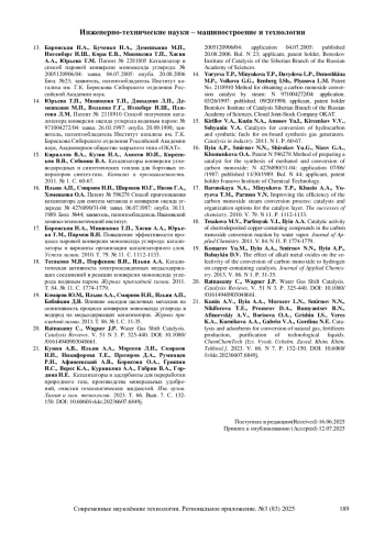 11. Androsov P.D., Mamaeva I.A., Golosman E.Z. Influence of Activation (Reduction) Conditions on the Catalytic Activity of Copper-Zinc Catalysts of NTK-10 Series.Russian Journal of Applied Chemistry. V. 77. N 7. P. 1136-1141. DOI: 10.1023/B:RJAC.0000044162.64932.8c.