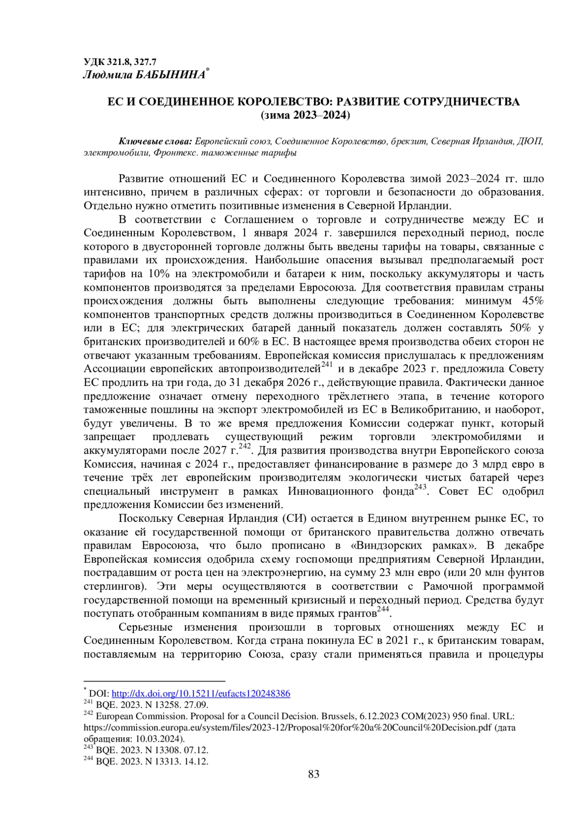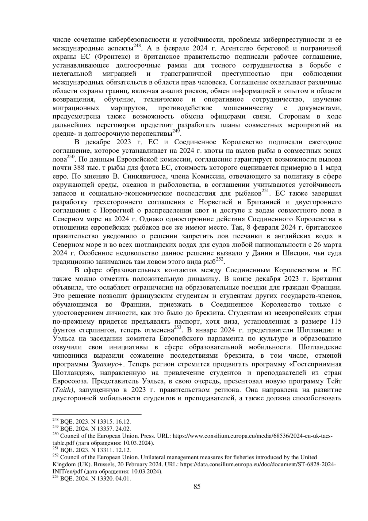 Развитие отношений ЕС и Соединенного Королевства зимой 2023–2024 гг. шло интенсивно, причем в различных сферах: от торговли и безопасности до образования. Отдельно нужно отметить позитивные изменения в Северной Ирландии
