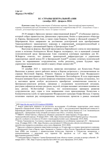 1. Global Gateway: в Брюсселе объявили о решении ЕС инвестировать 10 млрд евро в Транскаспийский коридор // ORIENT. 29 января 2024 г.